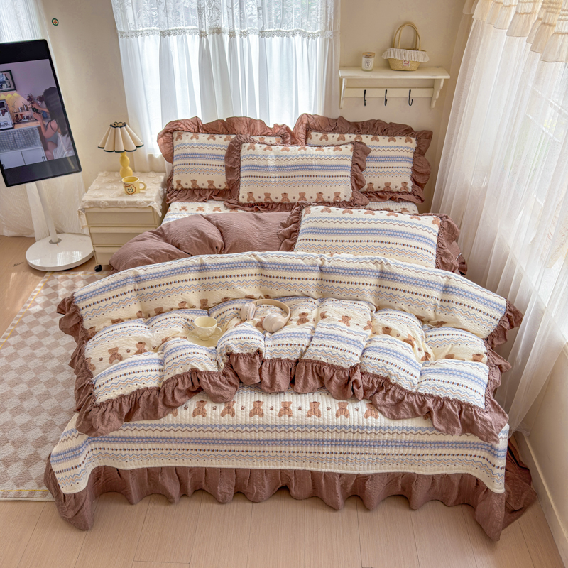 (总)仟网汇 2026新款密拷花边款法式泡芙纱夏被四件套夏被床盖四件套,波西米亚,春日花花,好柿发生,红红星人,灰调花园,焦糖小熊,马到成功,梦幻星人,奶糖猫咪,奶油啵啵,小云朵,紫罗兰