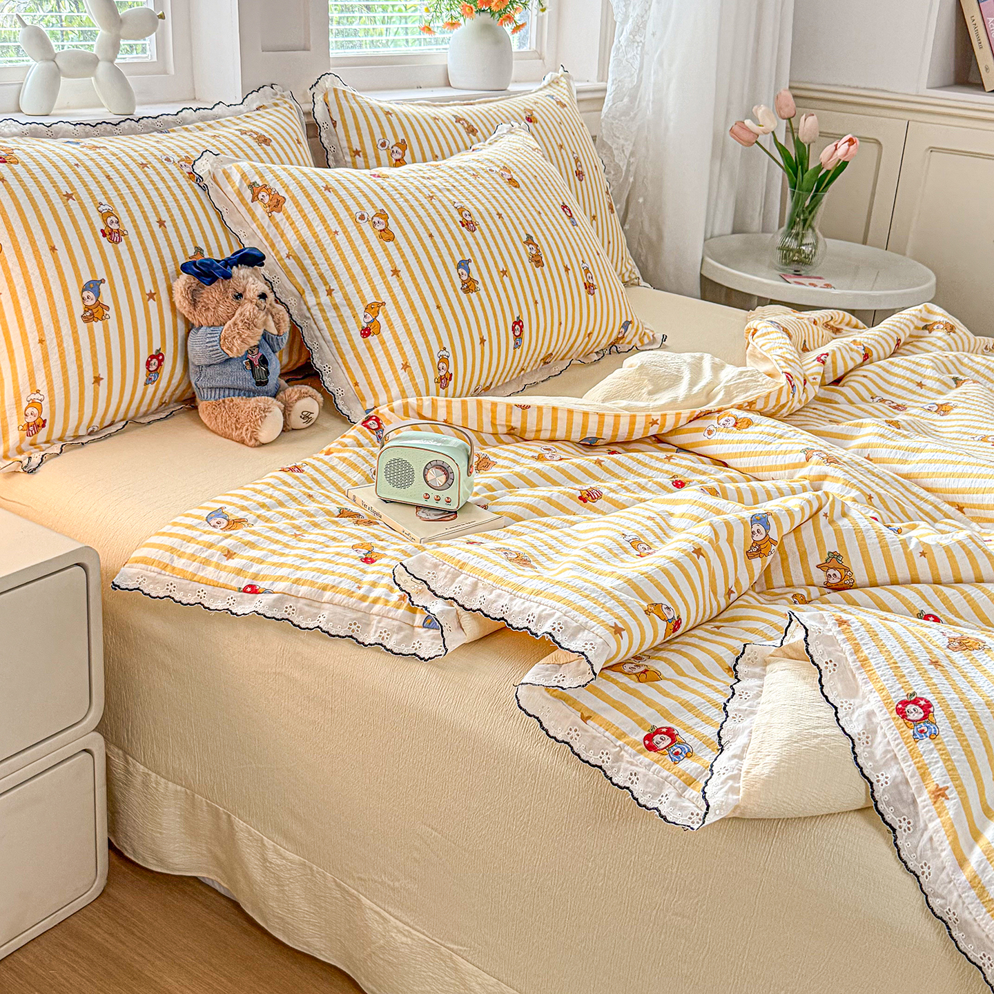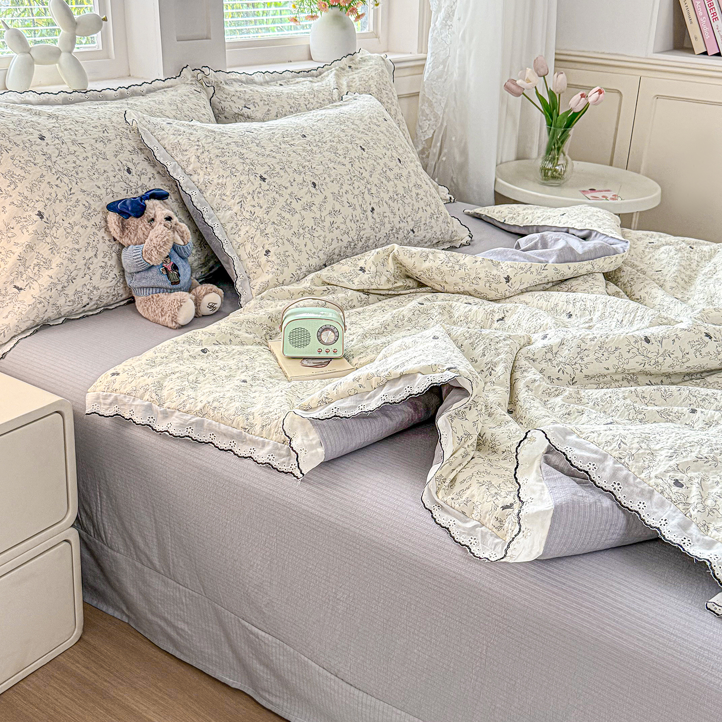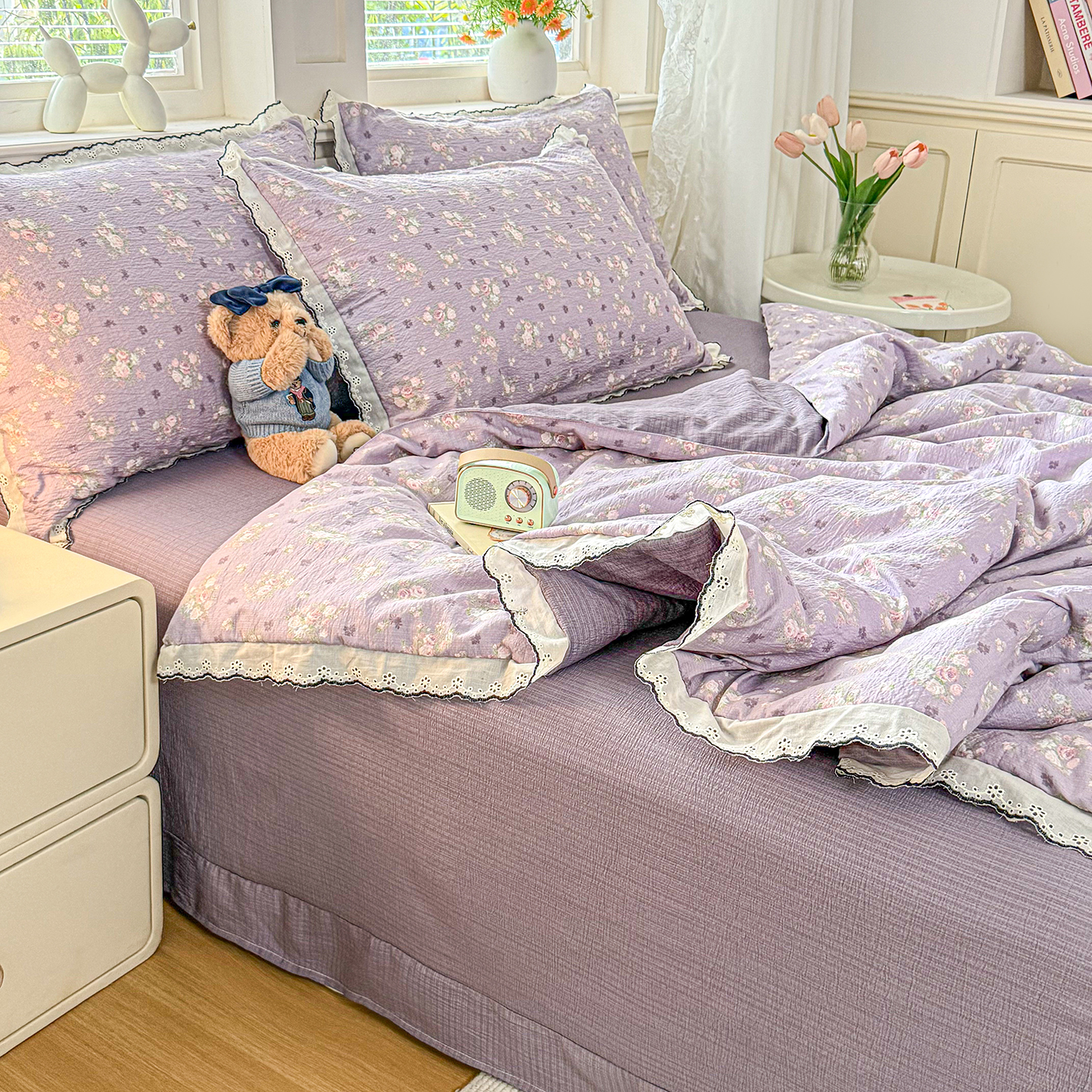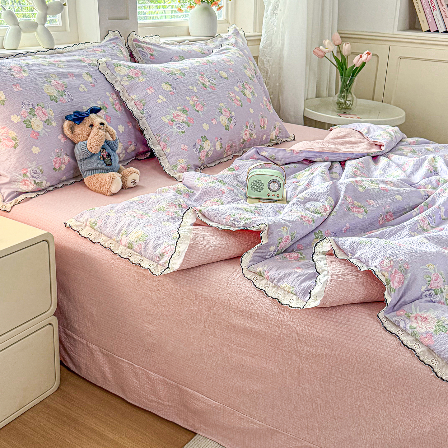 (总)梦纤绒 2026新款云感皱皱纱花边款夏被夏凉被空调被四件套,百福兰,春晓,可颂,太妃糖,小黑兔,春不晚,春日小熊,陌上花开,莫奈,若欢-绿,若欢紫色,舒芙蕾,田园拾趣-黄,兔小姐,郁金香小兔,波点小兔粉,波点小兔兰,情人节,十里桃花粉,十里桃花紫,夏天,运动健将熊,白茶-绿,桃花诺,白月光,缤纷几何,格格西高地,海盐蓝小格,黎漫,木槿绿,奶油泡芙,欧若拉,桃夭,甜茶,小晴天,芋泥紫小格,紫色蝴蝶结,心意,心意紫,小美满,乖乖象,一束温柔,半夏,春风里,豆蔻,蝴蝶梦,兰黛,山野栀子,素颜,微凉薄荷,心动,遇见,芝士奶酪,紫爱心,紫苏,花园兔,蜡笔画,初恋,莱茵河畔
