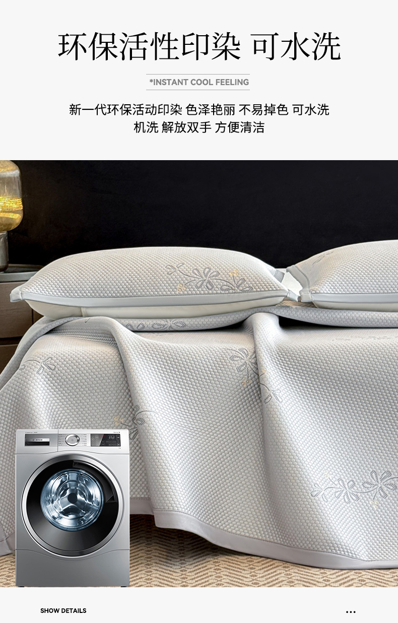 (总)畅畅家纺 2026新款夏季冰豆豆PE高分子凉感印花床裙款空调软凉席三件套,花韵-粉,花韵-灰,花韵-蓝,意境-粉,意境-灰,意境-蓝,意境-绿