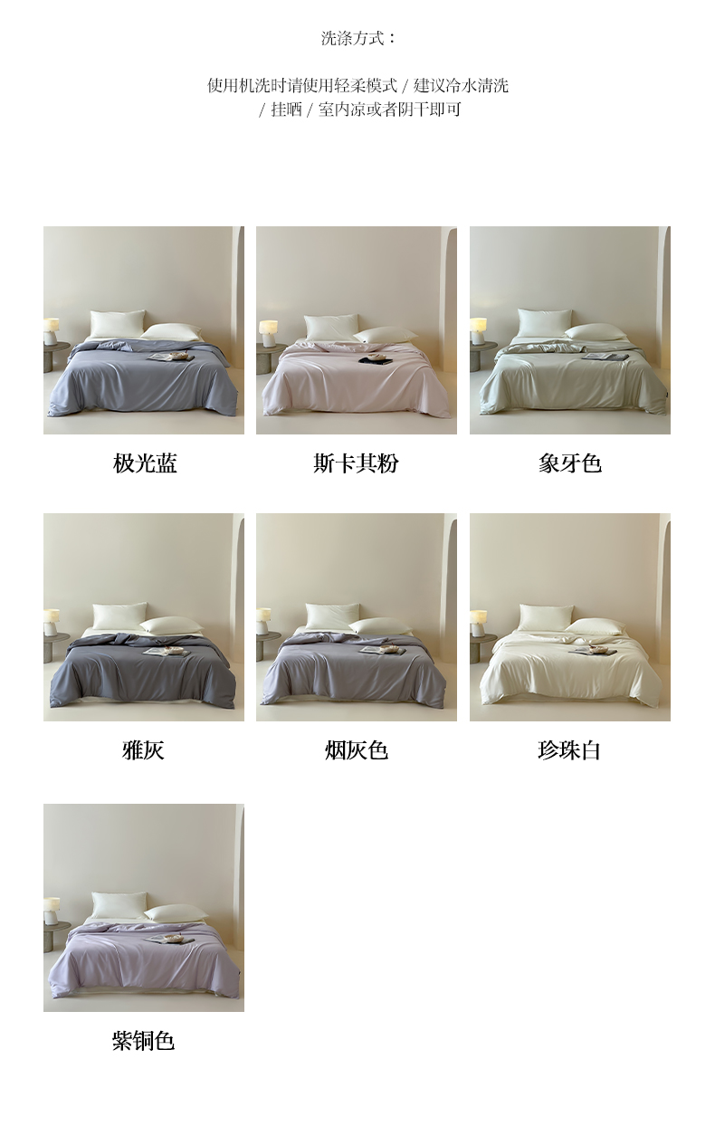 (总)三味舒屋 2026新款凉风小奢绸60S兰精天丝纯色单品系列-单被套被套单件,极光蓝,斯卡其粉,象牙白,雅灰,烟灰色,珍珠白,紫铜色,组合图仅供展示-不可下单