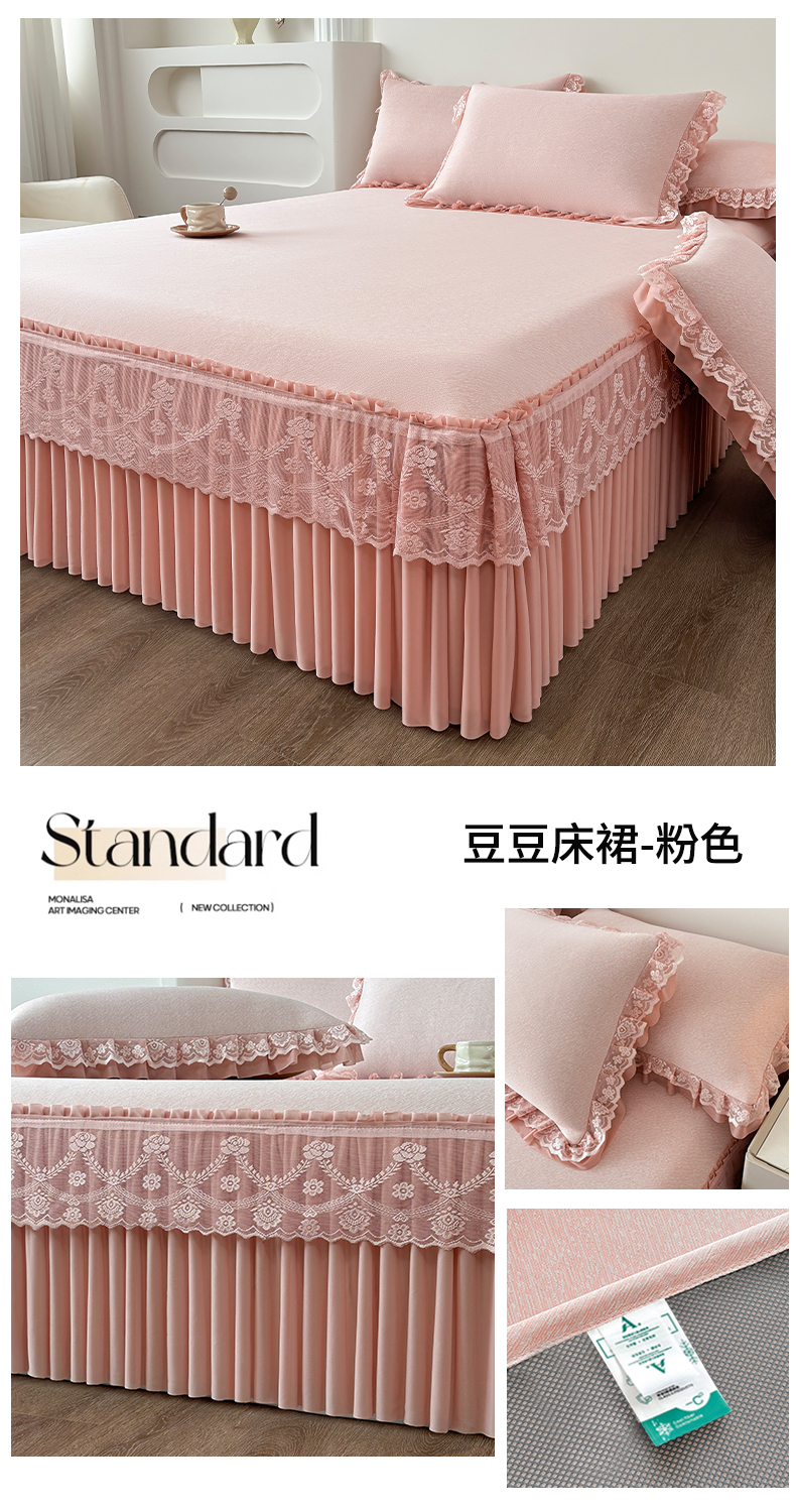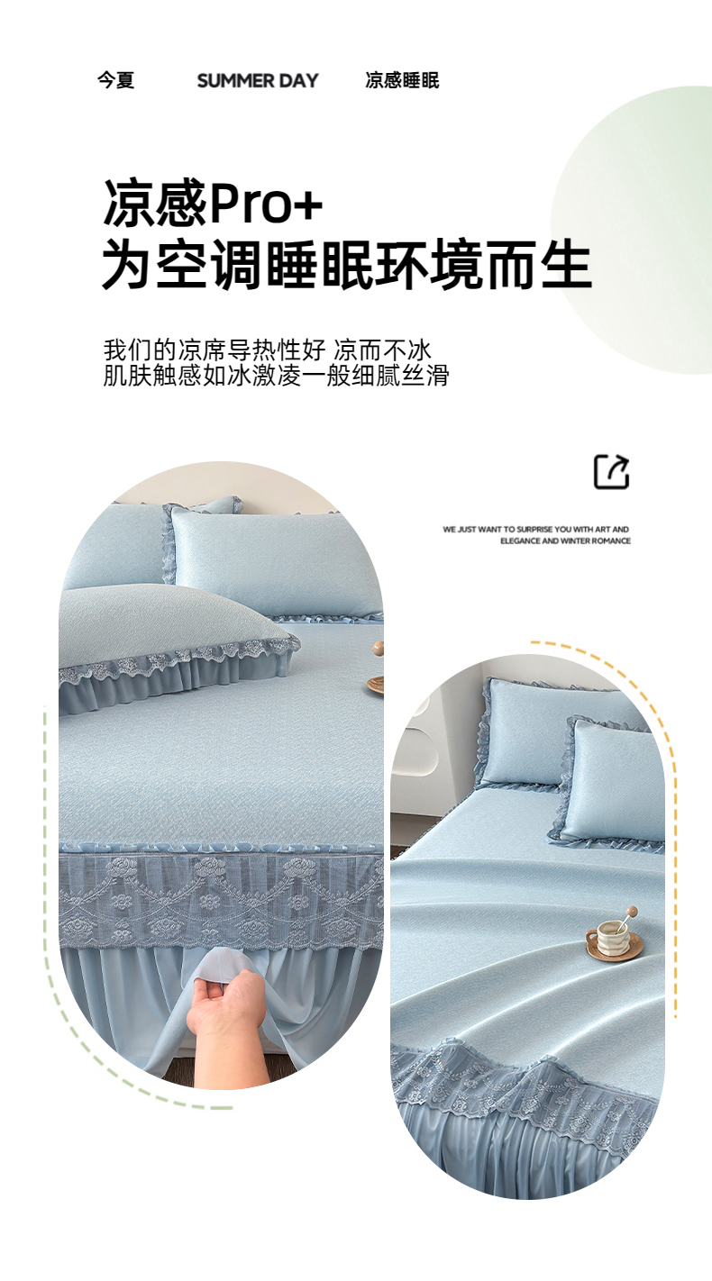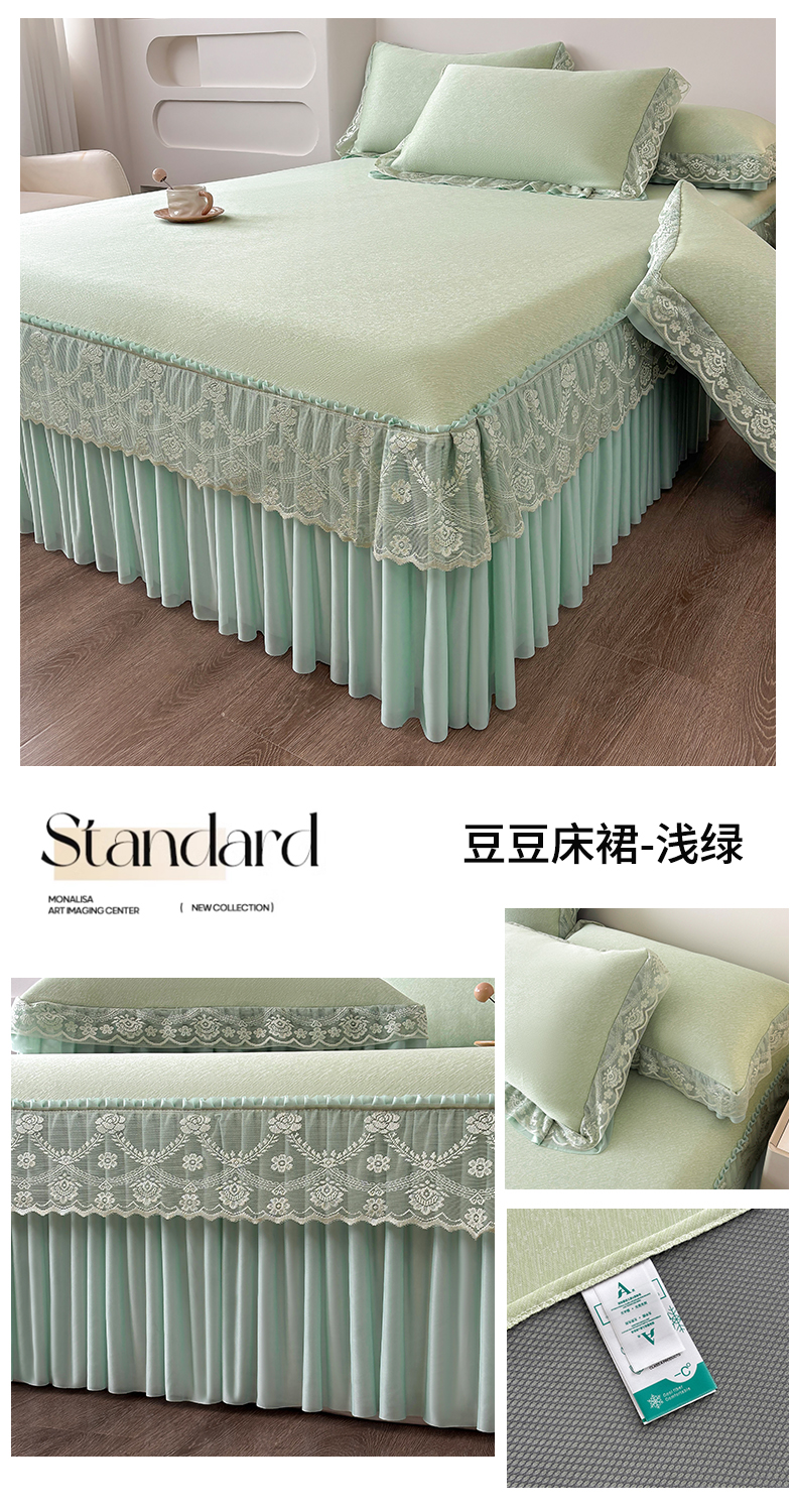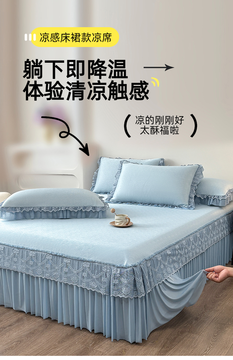 (总)金艾草 2026新款PE高分子凉豆豆小冰皮凉感花边床裙席子凉席三件套,豆豆床裙-粉色,豆豆床裙-灰色,豆豆床裙-浅蓝,豆豆床裙-浅绿