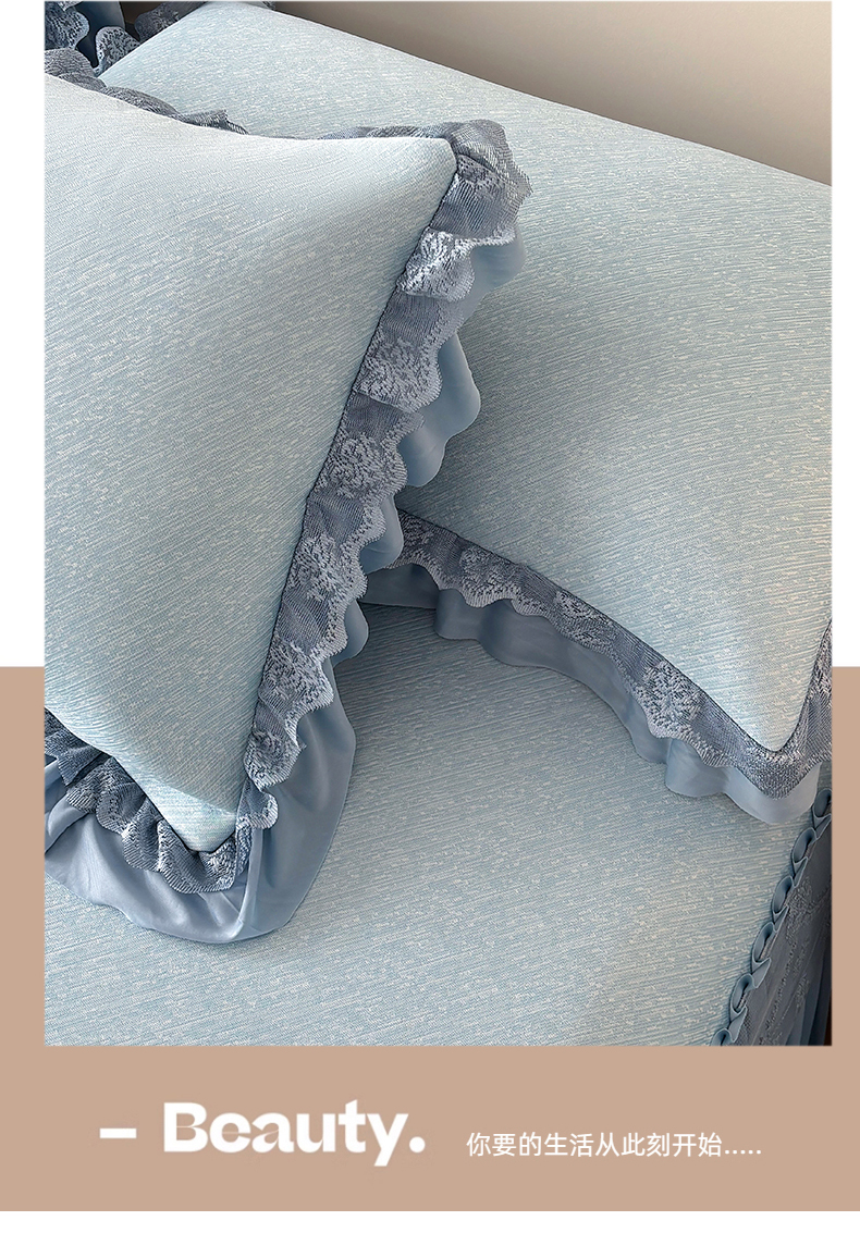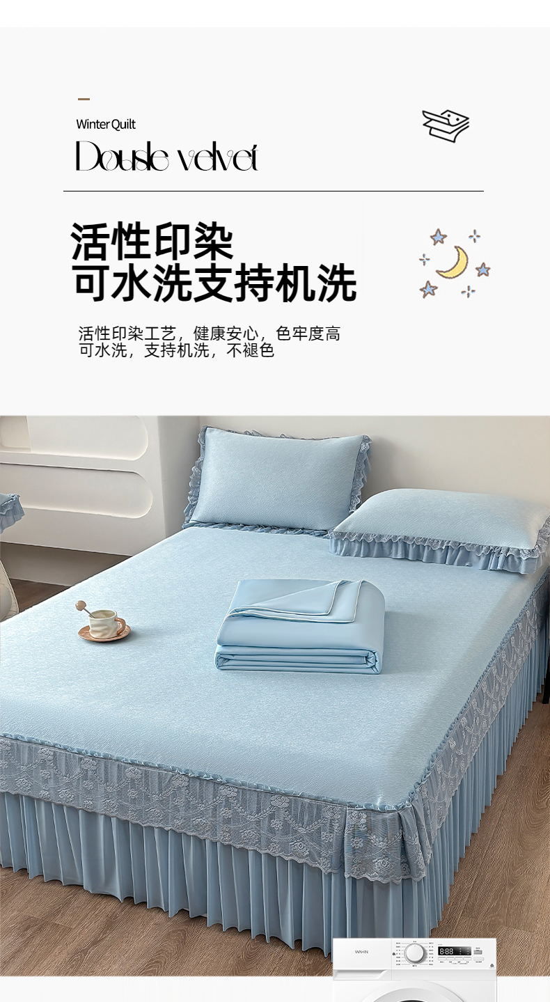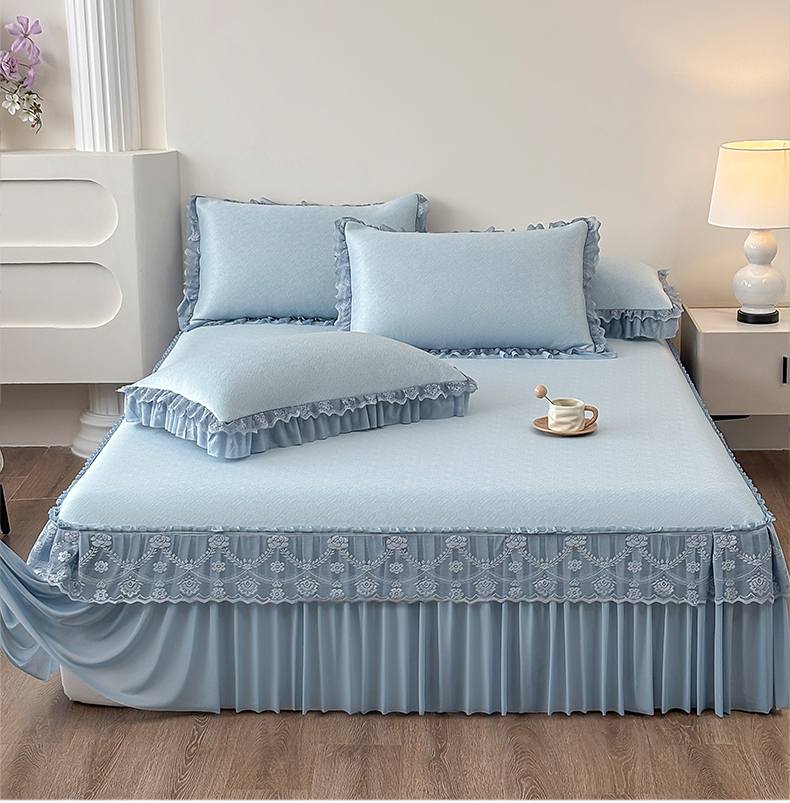 • 91家纺网 家纺一手货源 找家纺 金艾草 2026新款PE高分子凉豆豆小冰皮凉感花边床裙席子凉席三件套 豆豆床裙-浅蓝