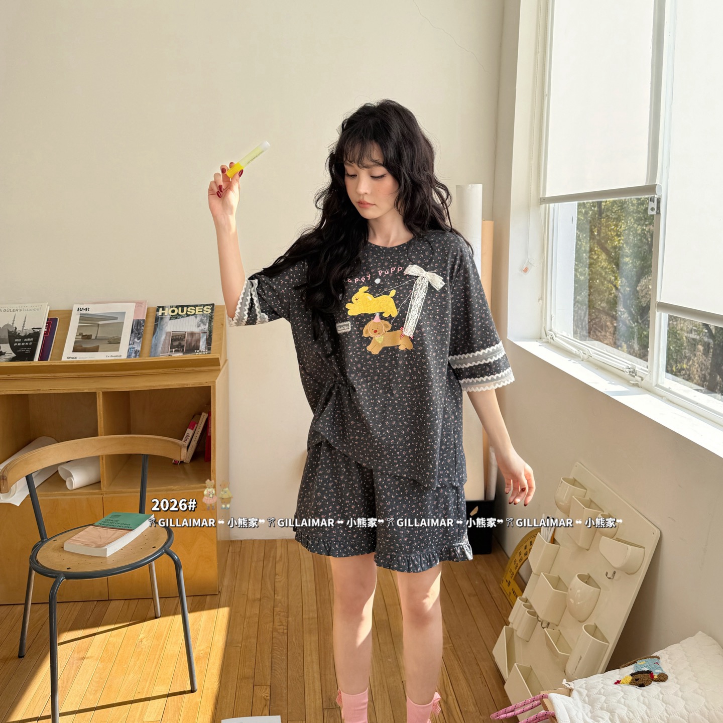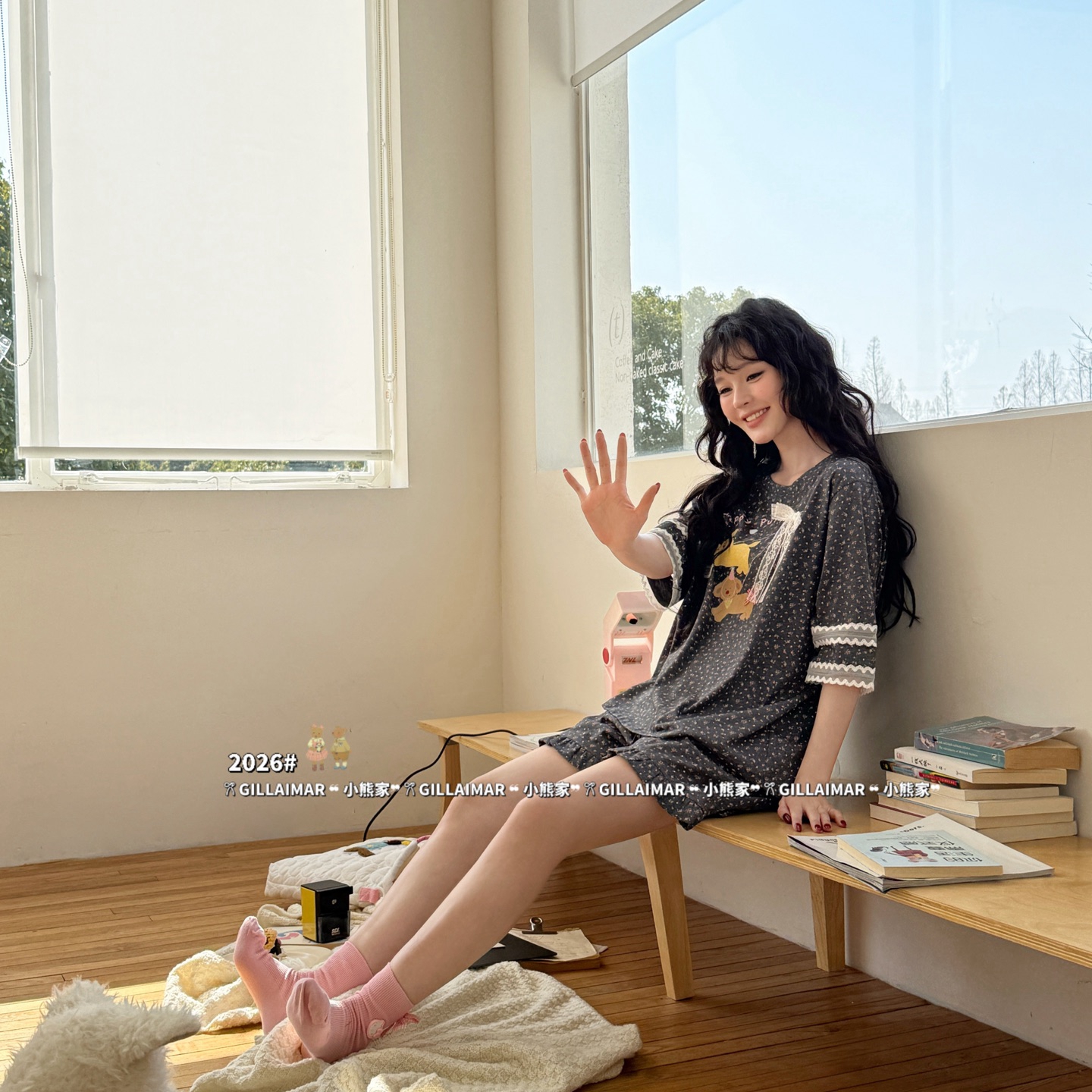 (总)妍景家居生活馆 2026新款木耳边黑波点短长家居服,木耳边黑波点短长