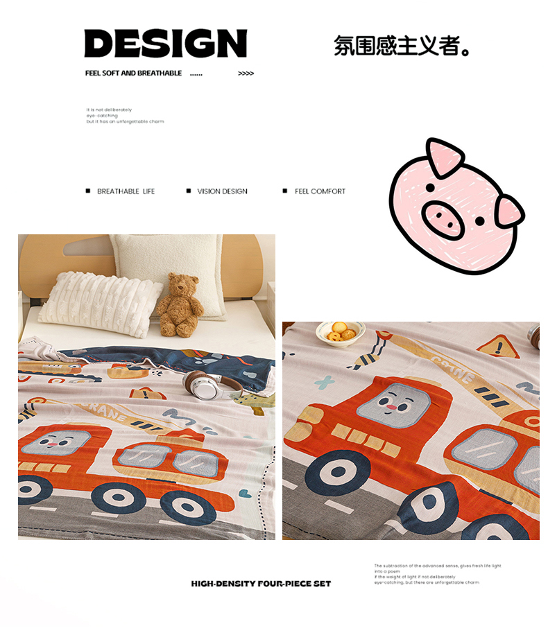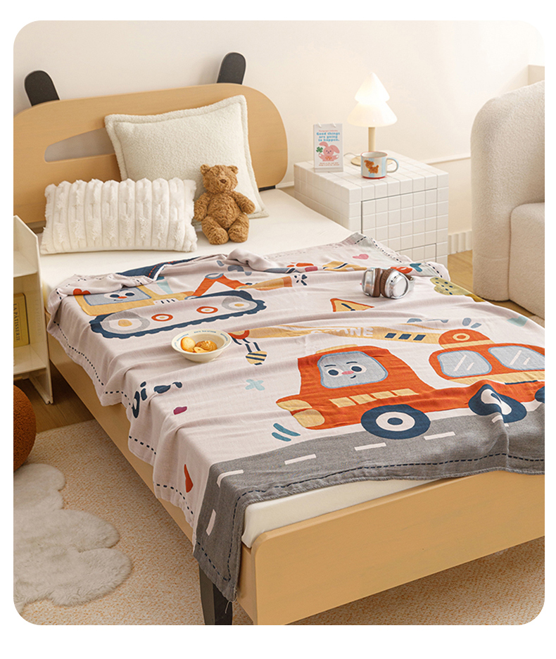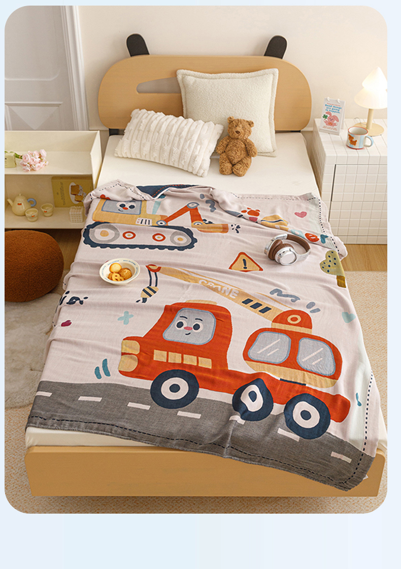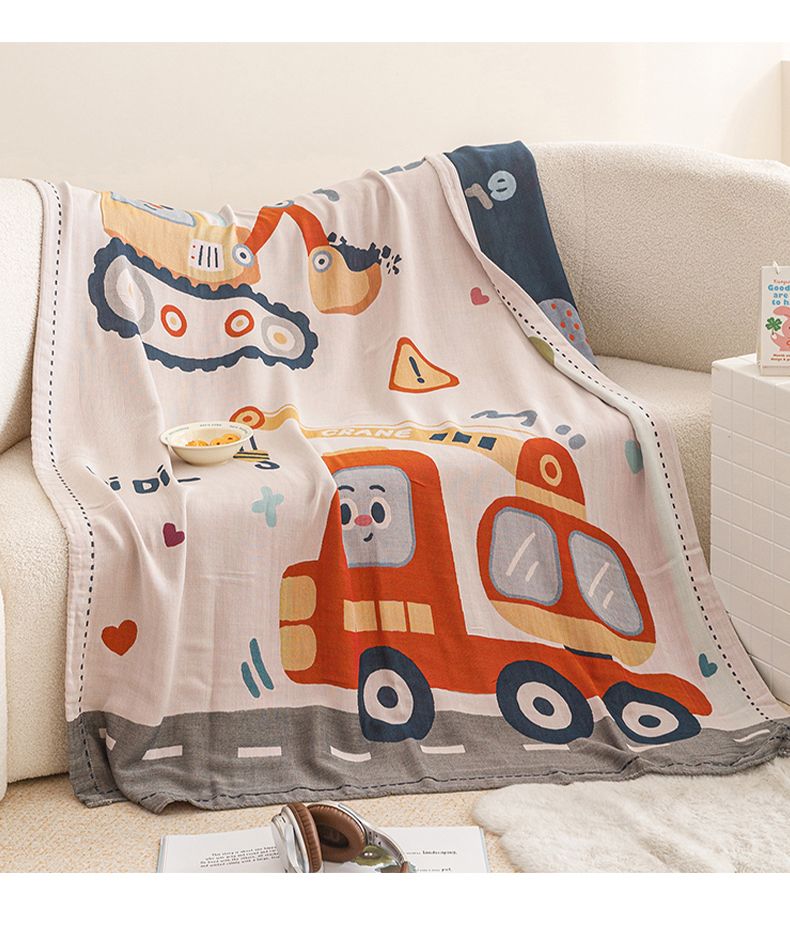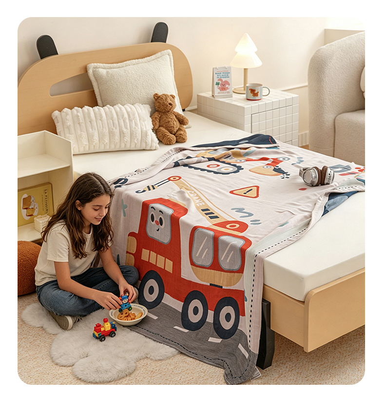 悦然毛巾被 2026春夏新款三层竹纤维冷感毯休闲儿童毯成人毛巾被 阳光车长