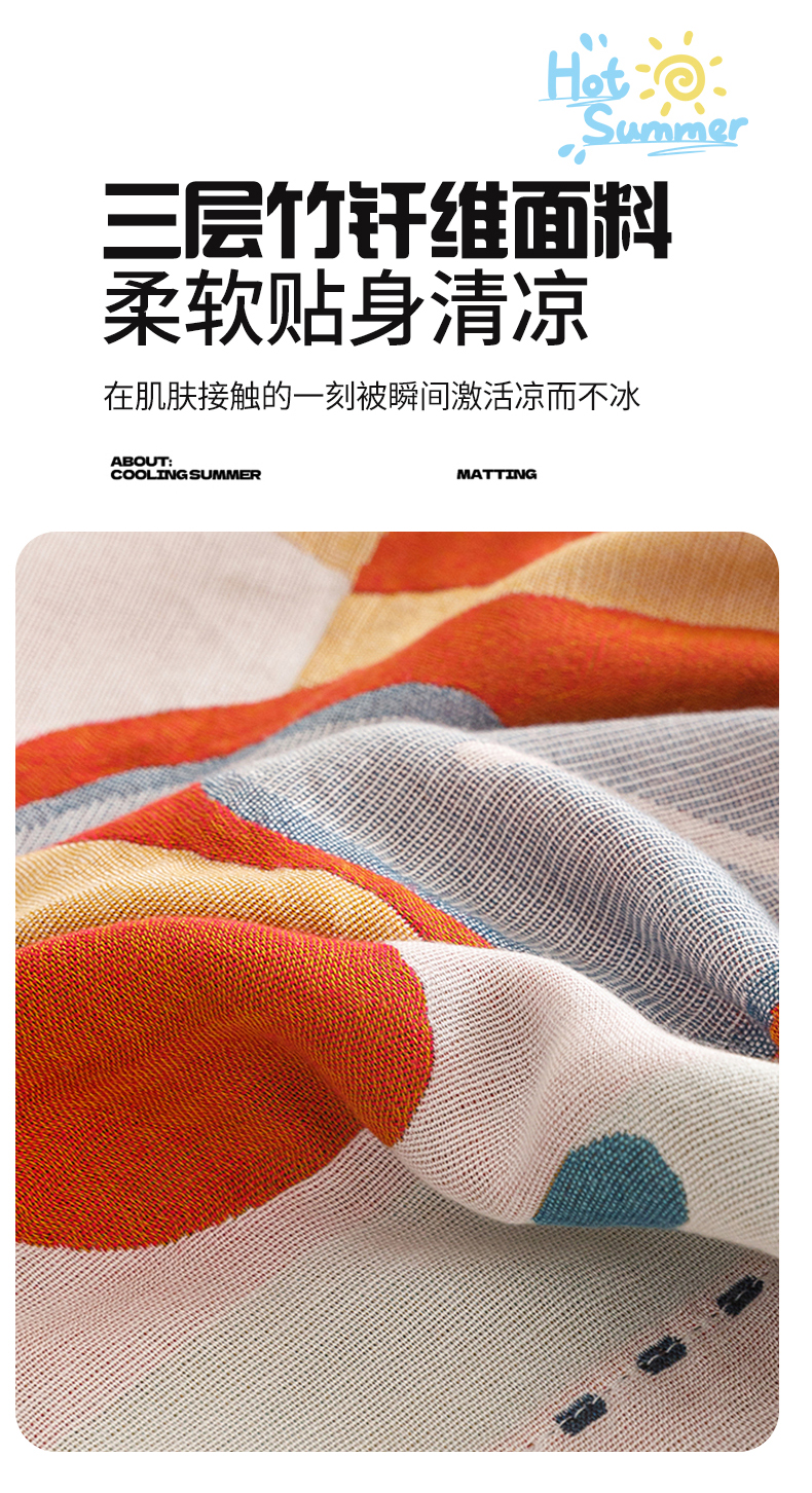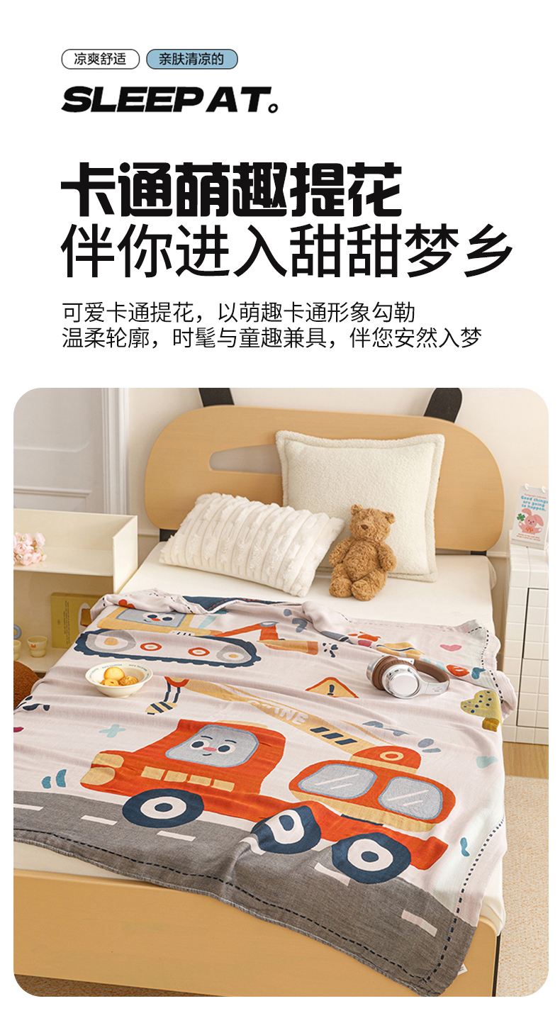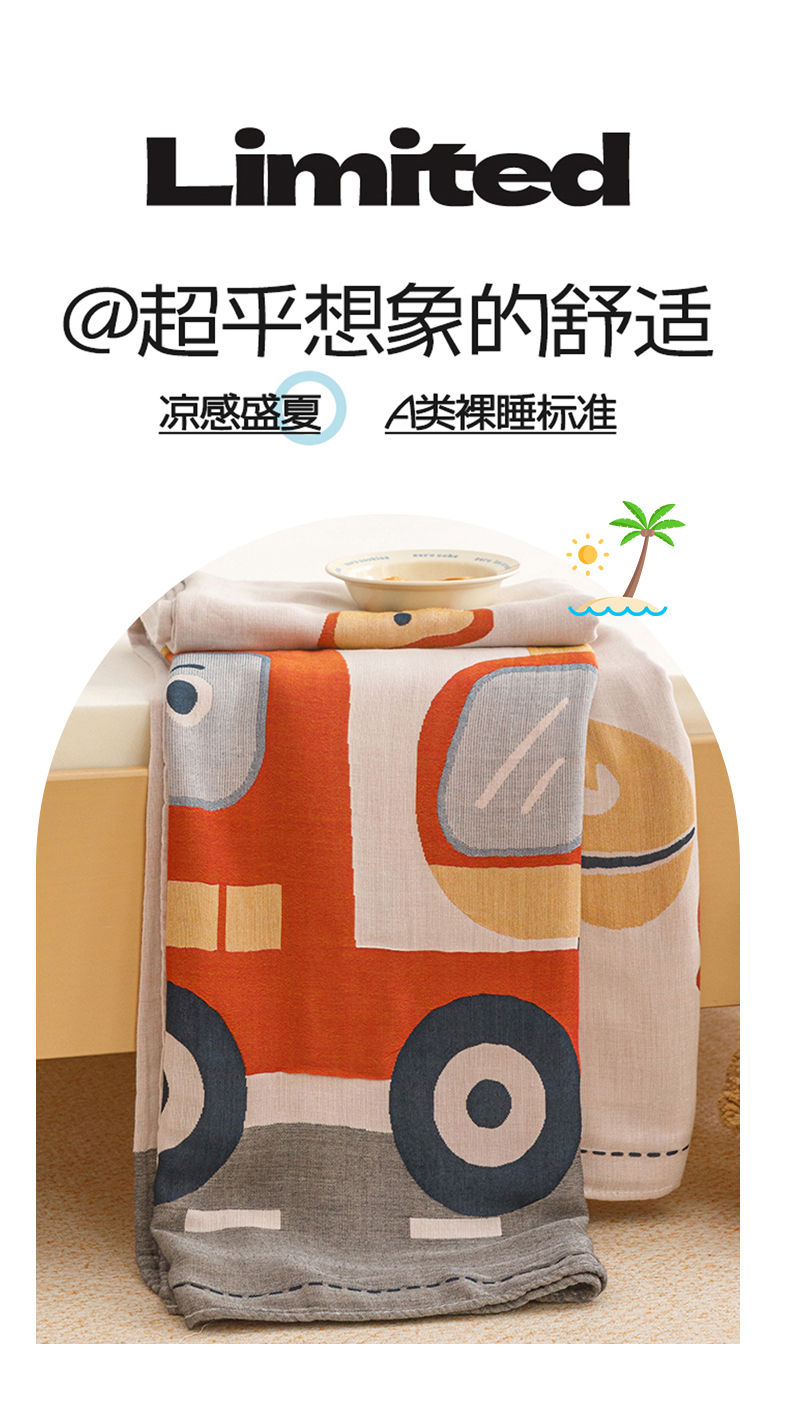 商品名称:悦然毛巾被 2026春夏新款三层竹纤维冷感毯休闲儿童毯成人毛巾被 阳光车长