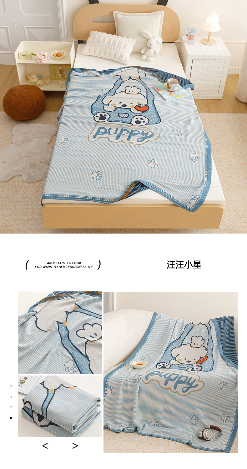 (总)悦然毛巾被 2026新款色织水洗棉盖毯安心棉床盖全棉纱布毛巾被夏被夏凉被空调被,组合图仅供展示不可下单,蓝格萌马,蓝格小狗,蓝格心语,蓝格星芒,蓝格熊语