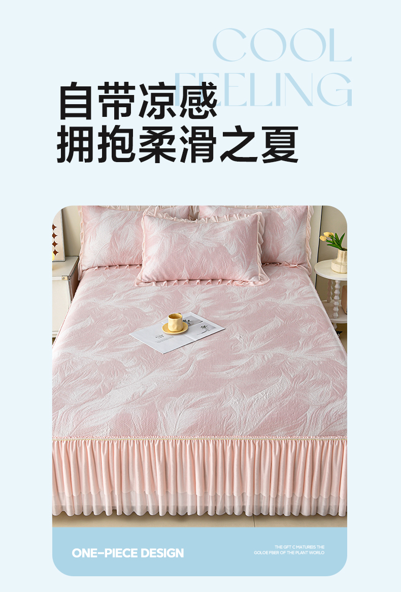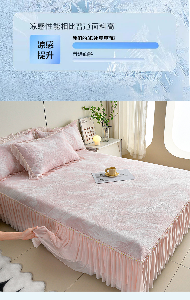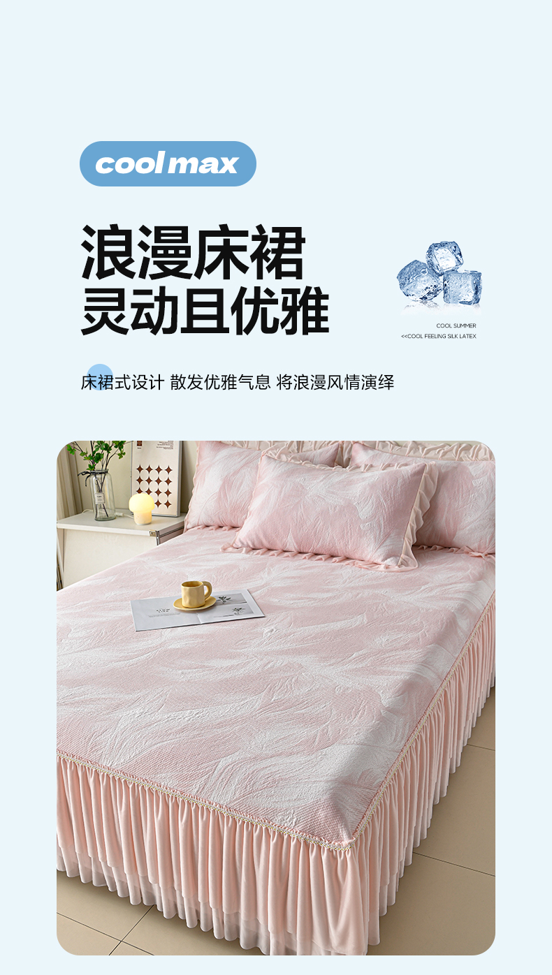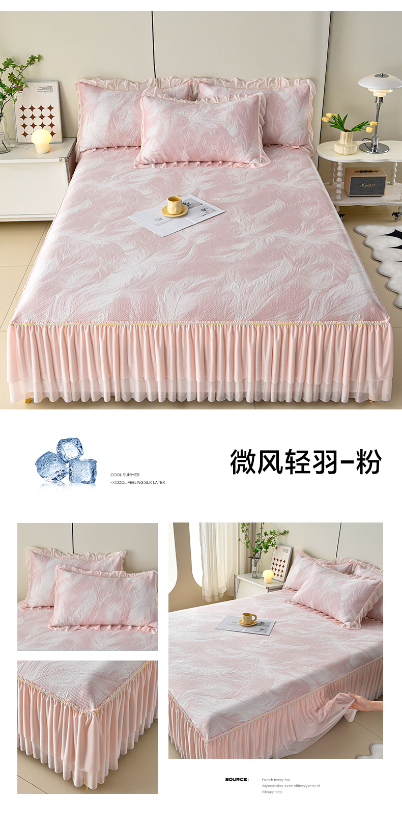 商品名称:畅畅家纺 2026春夏新款夏季3D立体冰豆豆凉席席子床裙三件套 微风轻羽-粉