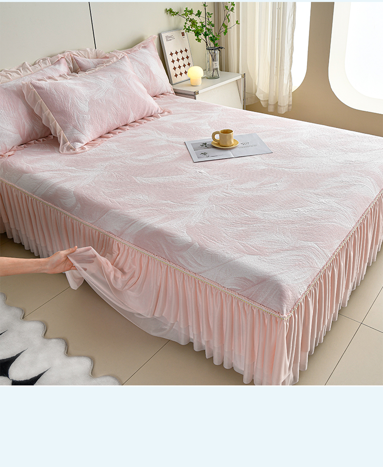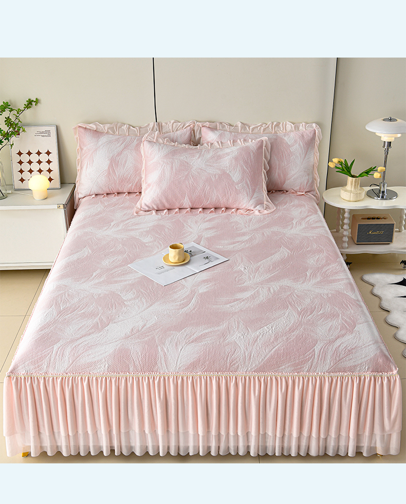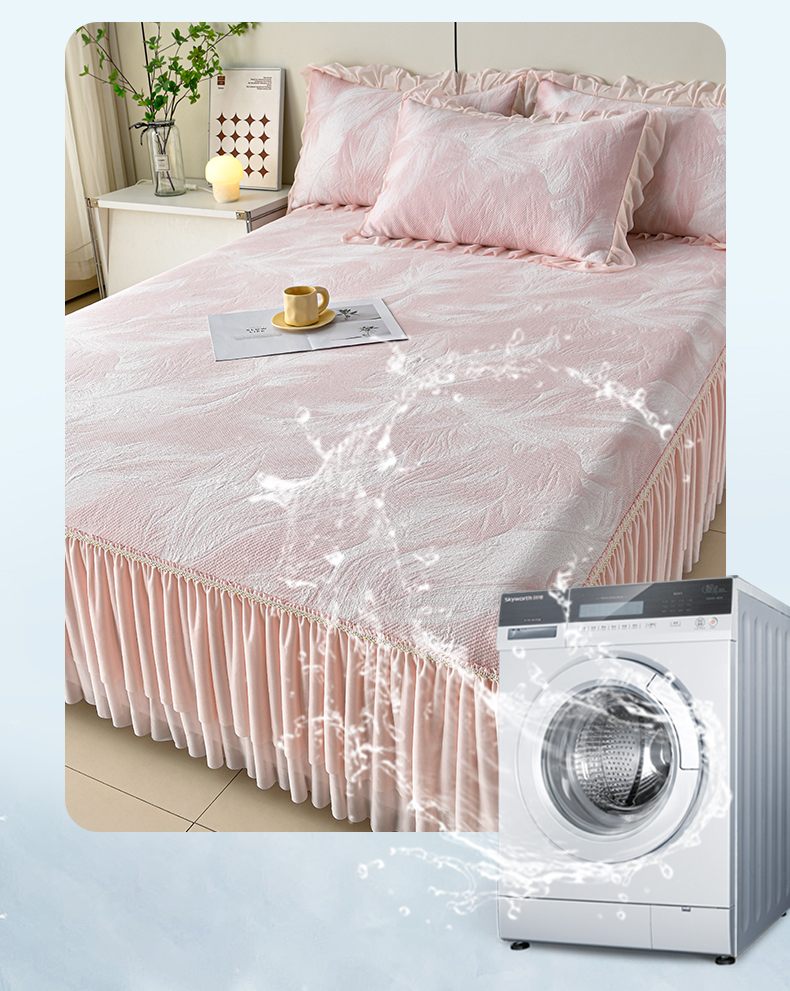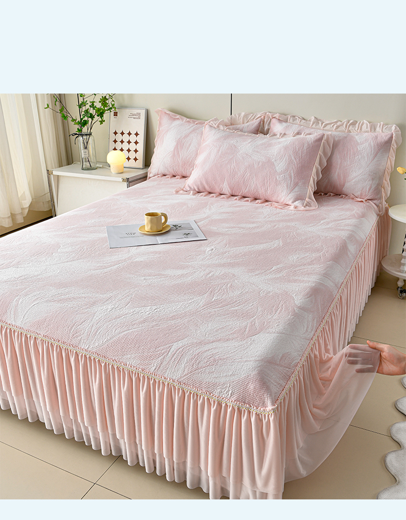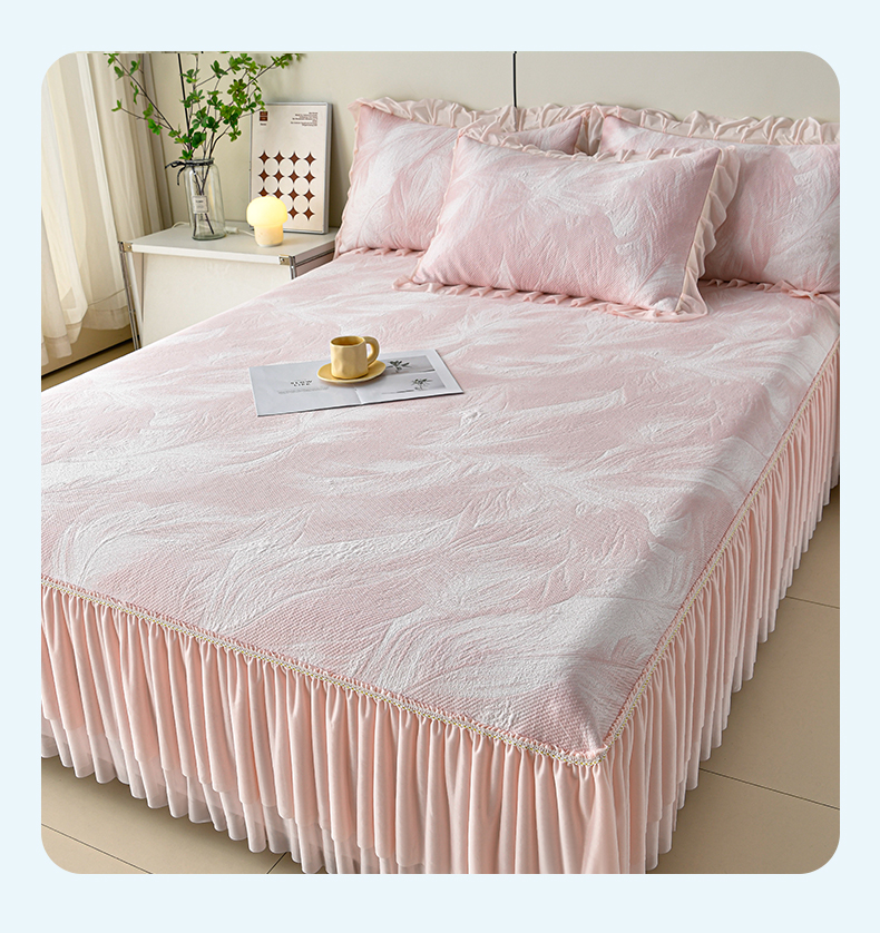 商品名称:畅畅家纺 2026春夏新款夏季3D立体冰豆豆凉席席子床裙三件套 微风轻羽-粉
