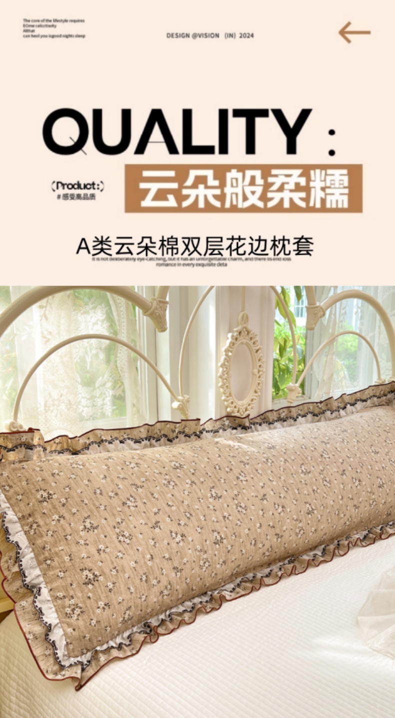 商品名称:圣比熊 2026新款A类云朵棉蕾丝双层花边枕套加长双人情侣1.8米枕芯内胆套1.5m枕头 黎梦
