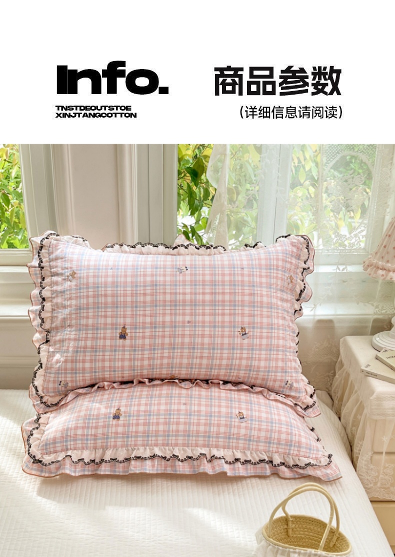 商品名称:圣比熊 2026新款A类云朵棉蕾丝双层花边枕套宿舍单人单只一只装枕芯48x74cm内胆套 幸运熊