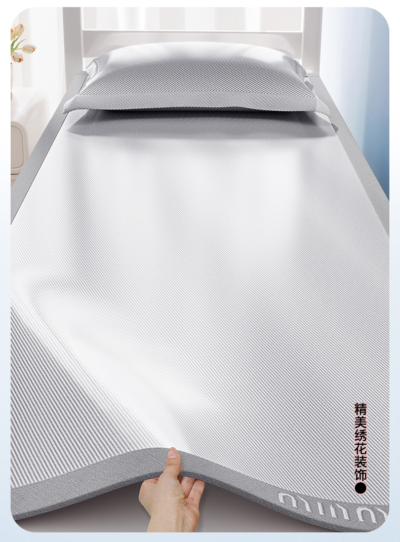 女子家纺 2026新款学生床斜纹冰丝刺绣款凉席席子凉席 雪花灰