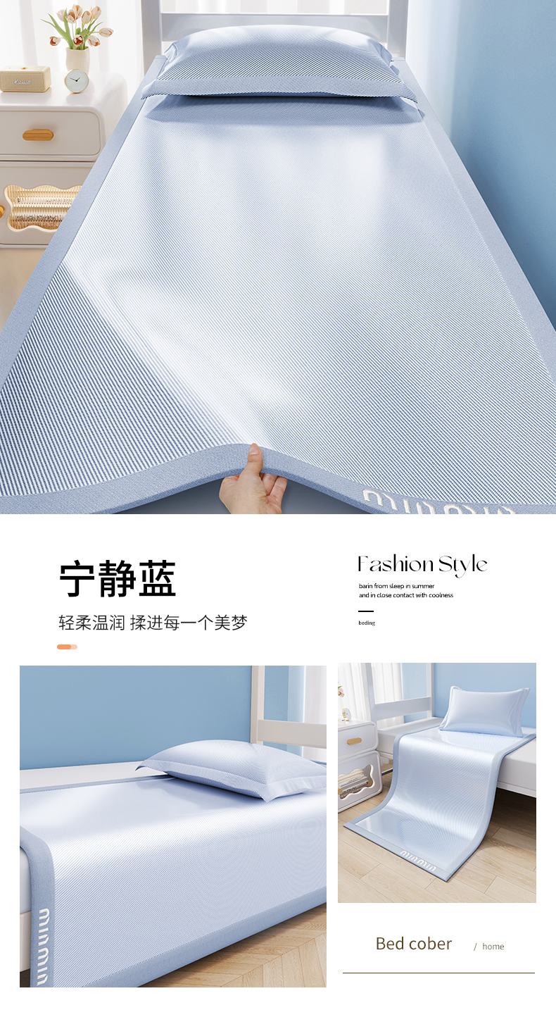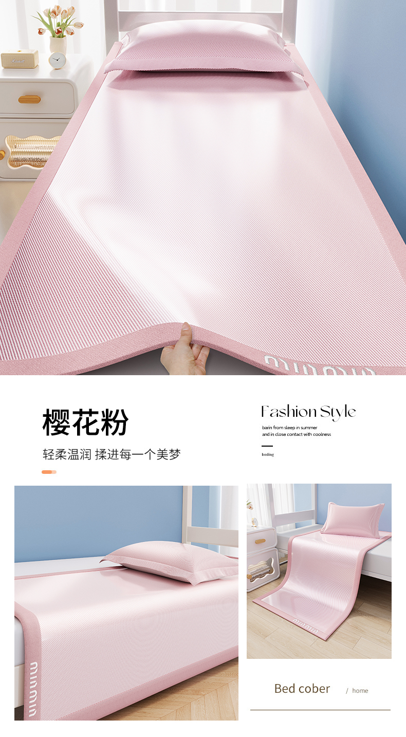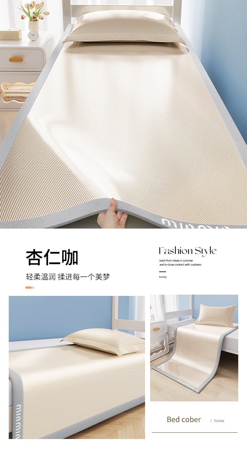 (总)女子家纺 2026新款学生床斜纹冰丝刺绣款凉席席子凉席,冰山蓝,凉茶绿,奶茶咖,宁静蓝,柠檬绿,杏仁咖,雪花灰,樱花粉