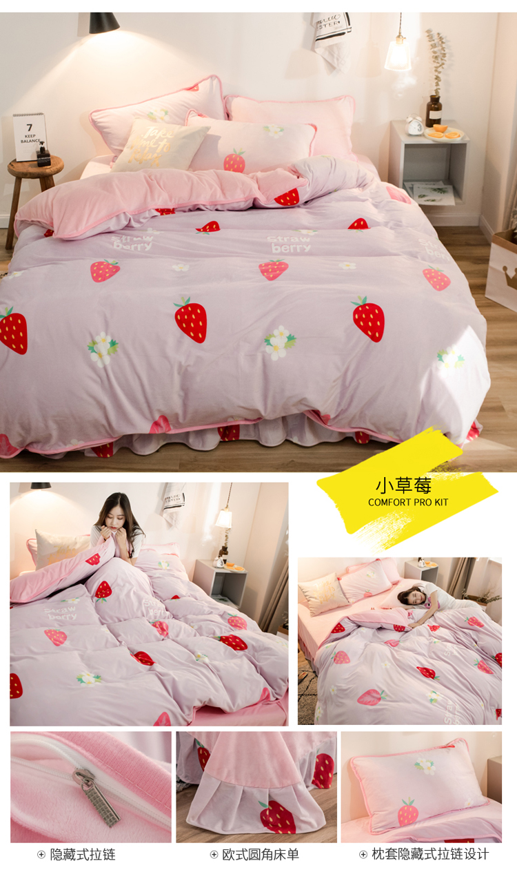 (总)绒世界 2025新款加厚牛奶绒刺绣床裙款四件套,草莓-奶白粉,草莓-奶白,草莓-湖水蓝,草莓-落樱粉,草莓-薰衣紫