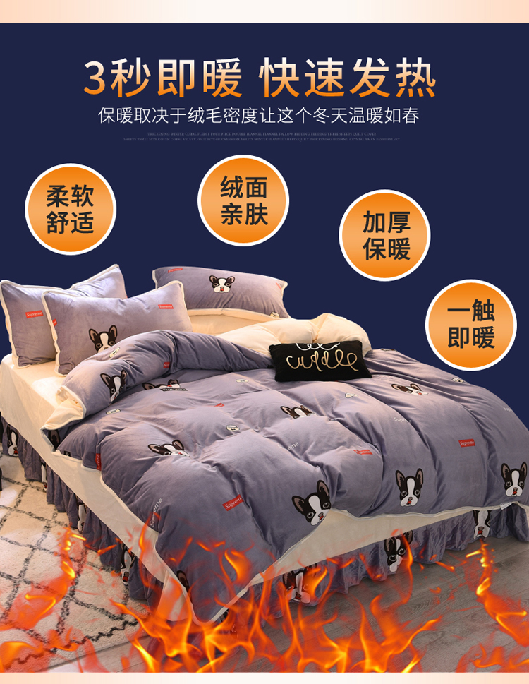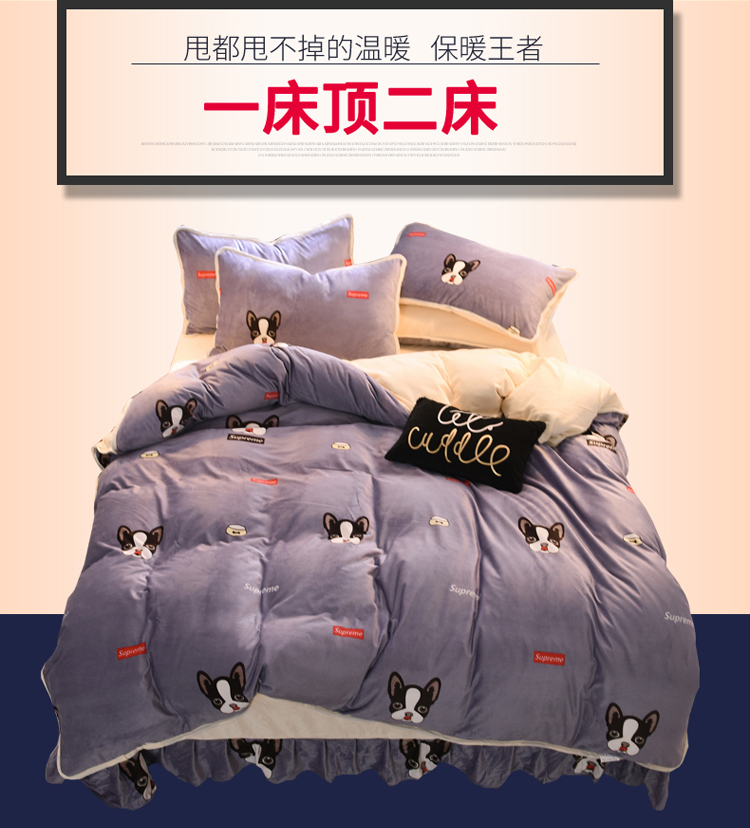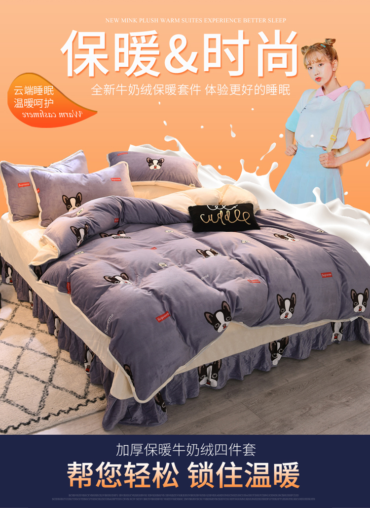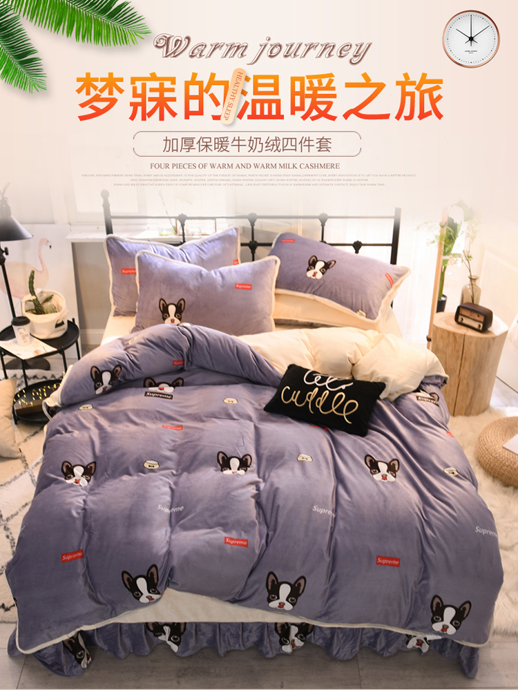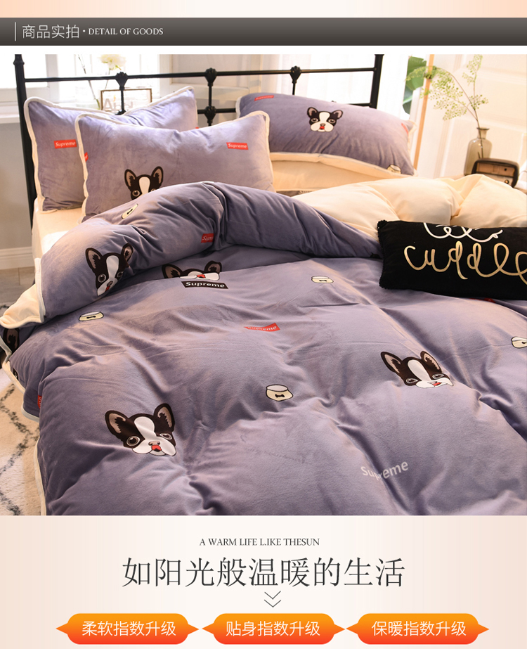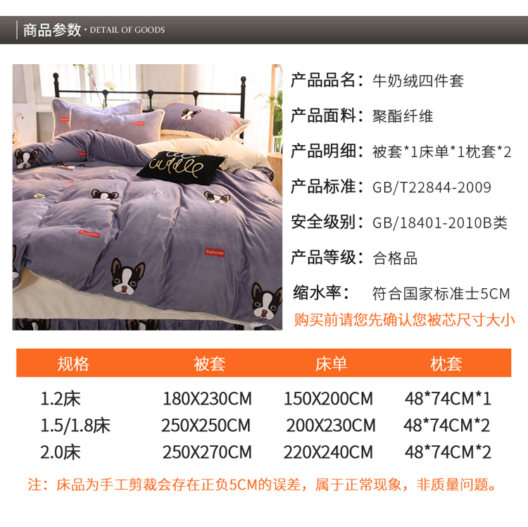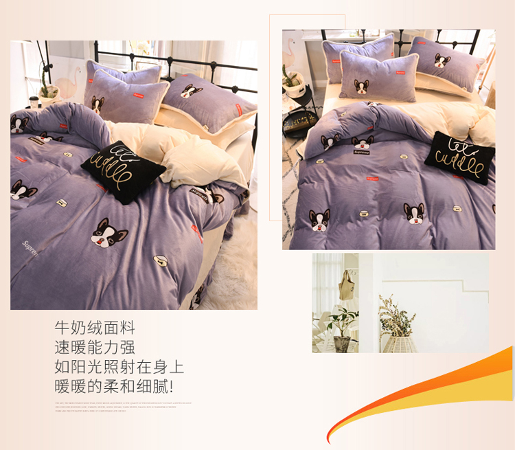 商品名称:绒世界 2018秋冬印花牛奶绒爆款四件套第二版 小狗
