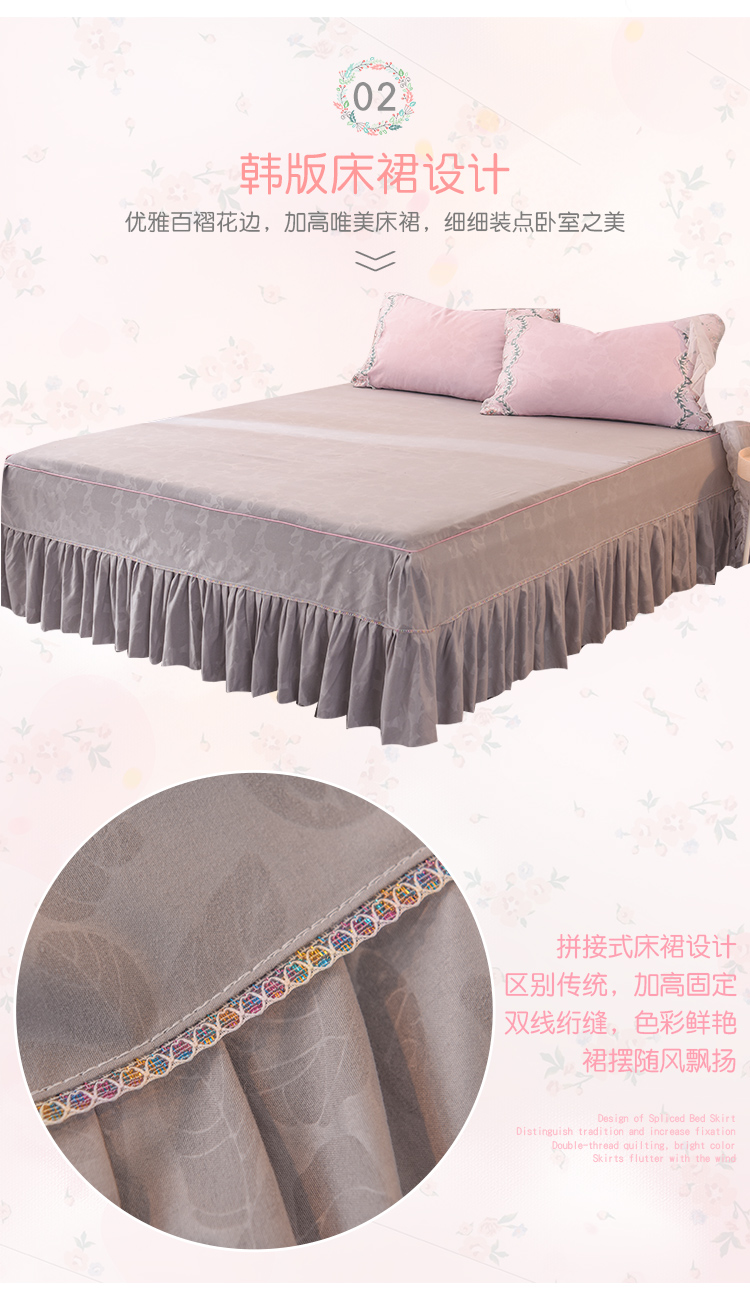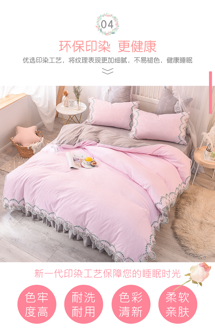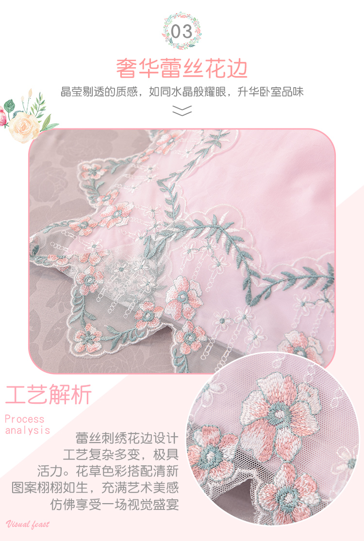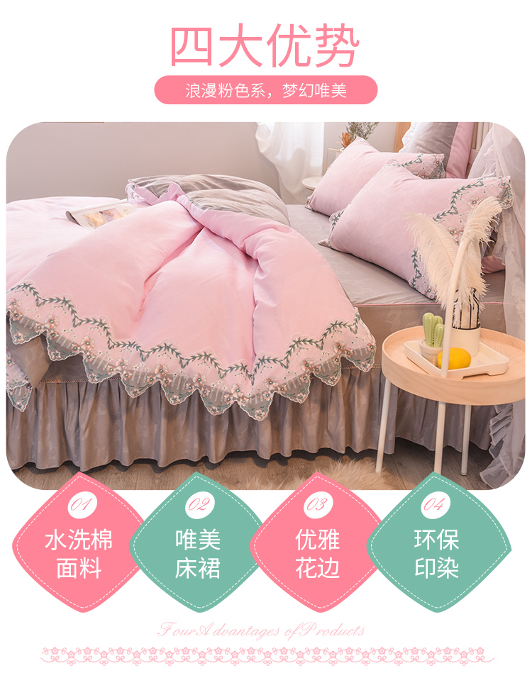 欧冠 2019新品玫瑰秘密系列四件套床裙款玫瑰秘密-粉灰