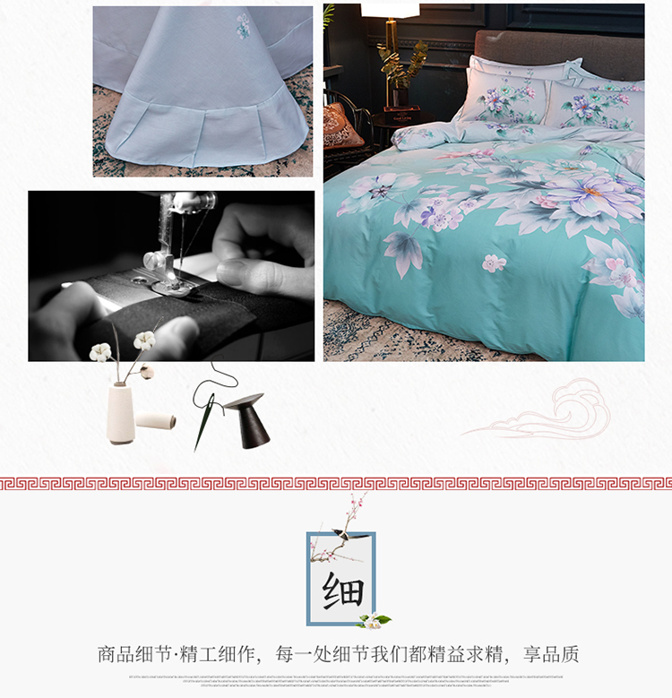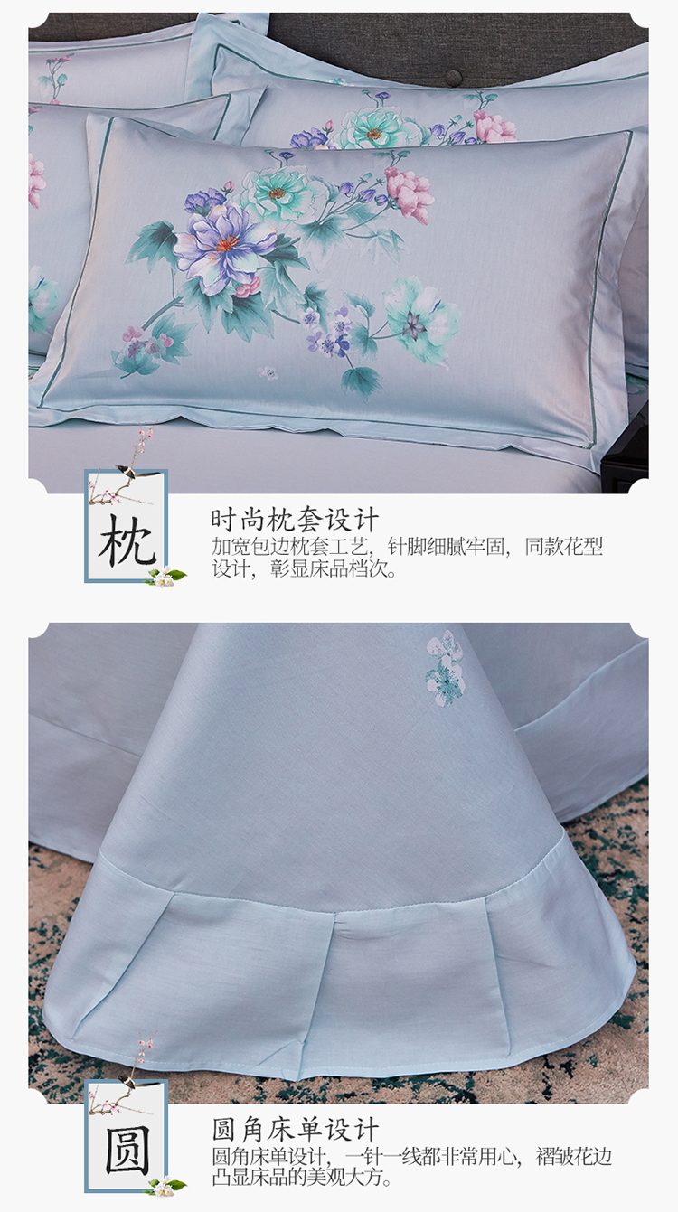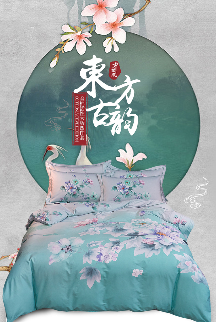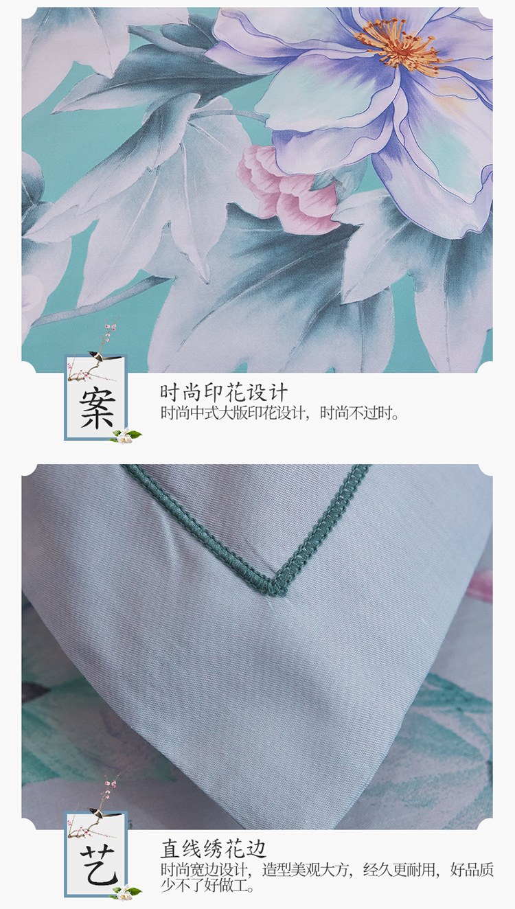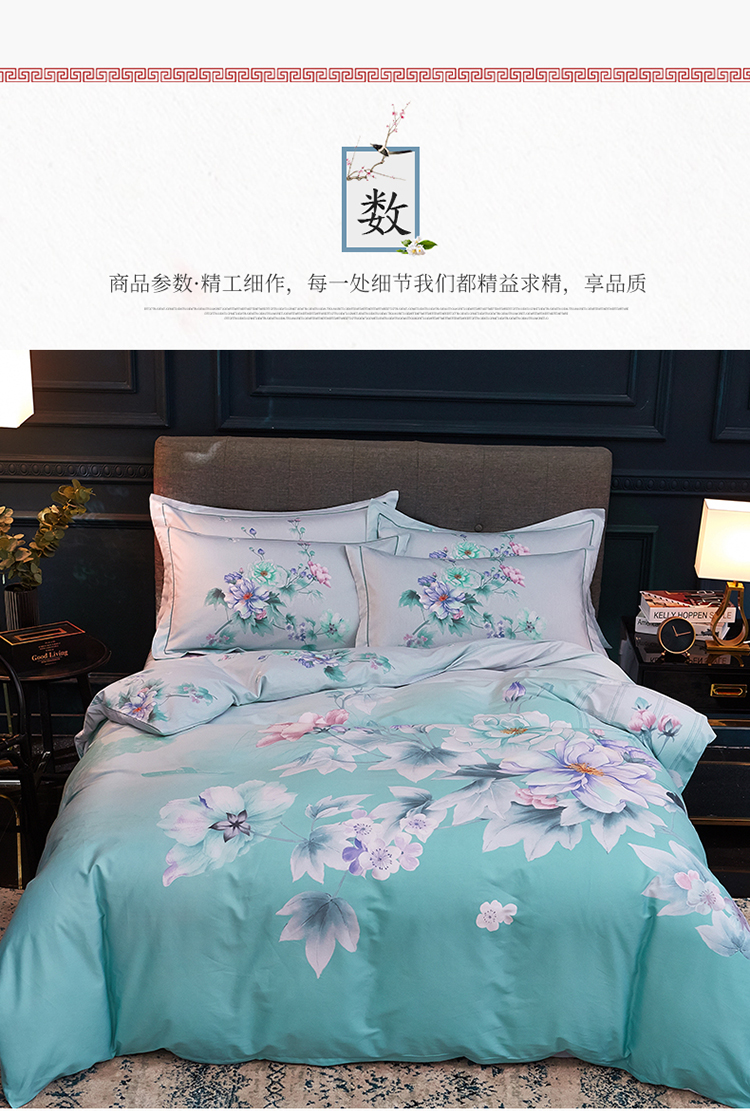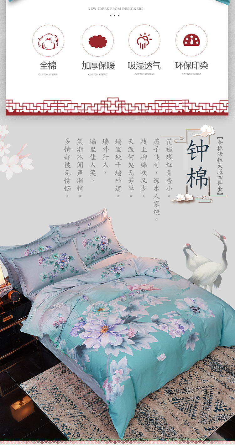雲归梦家纺 2019新款13372全棉活性大版四件套 花木槿