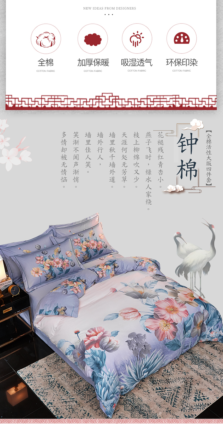 雲归梦家纺 2019新款13372全棉活性大版四件套 仙缘