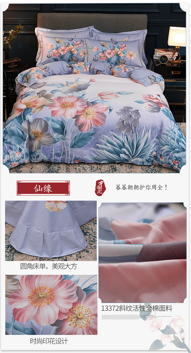 商品名称:雲归梦家纺 2019新款13372全棉活性大版四件套 仙缘