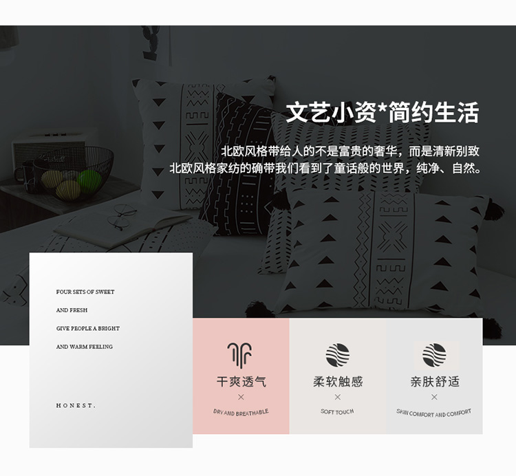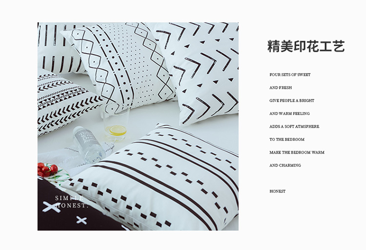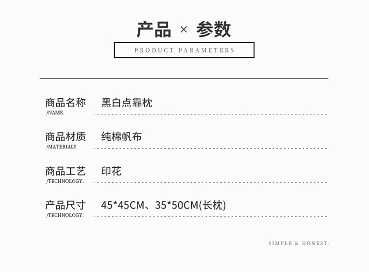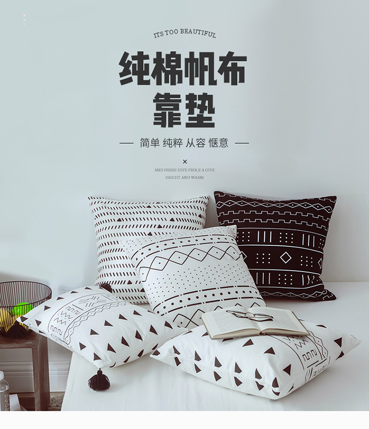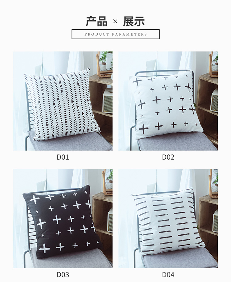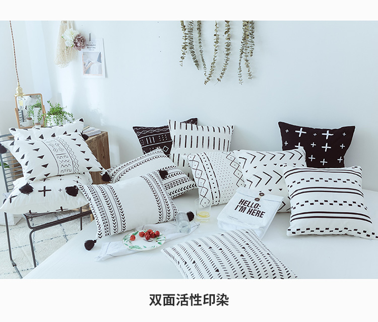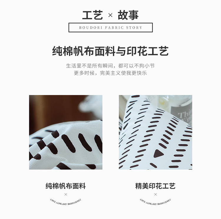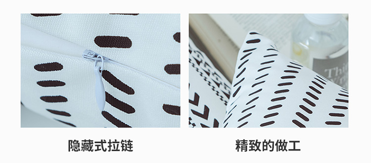 商品名称:美茉家居2019纯棉帆布黑白印花抱枕北欧简约点线几何