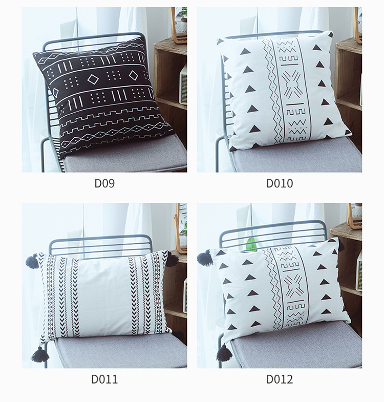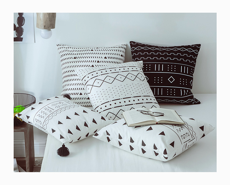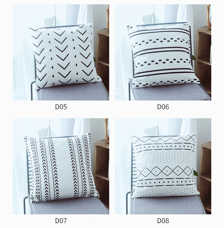 美茉家居2019纯棉帆布黑白印花抱枕北欧简约点线几何