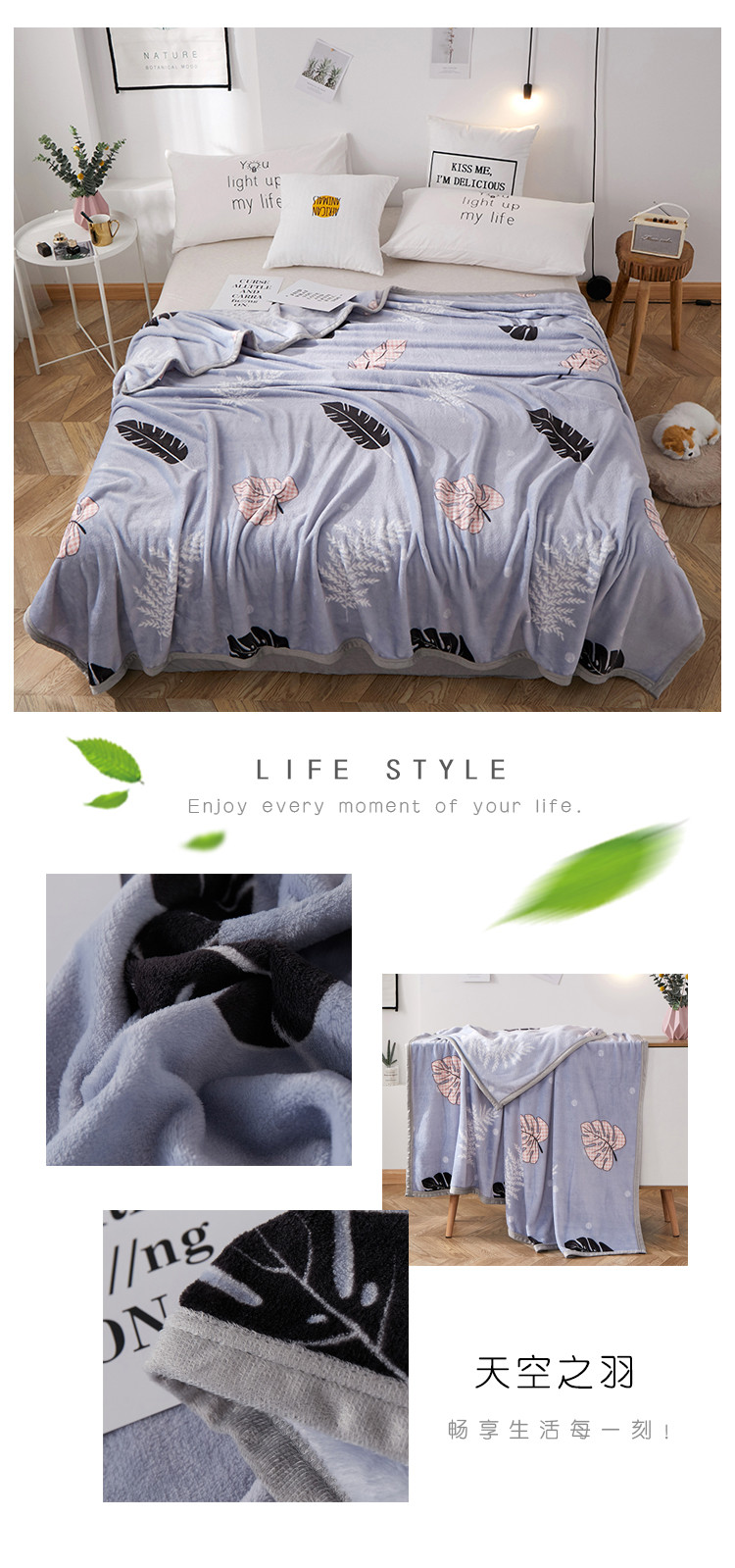商品名称:羋多家纺 2023新款冰貂绒系列毛毯 天空之羽