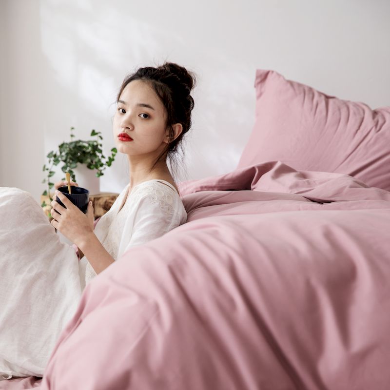 (总)涞澳家纺 2026新款全棉纯棉水洗棉纯色花边款四件套-珠若,珠若-米白,珠若-浅灰,珠若-浅绿,珠若-浅玉