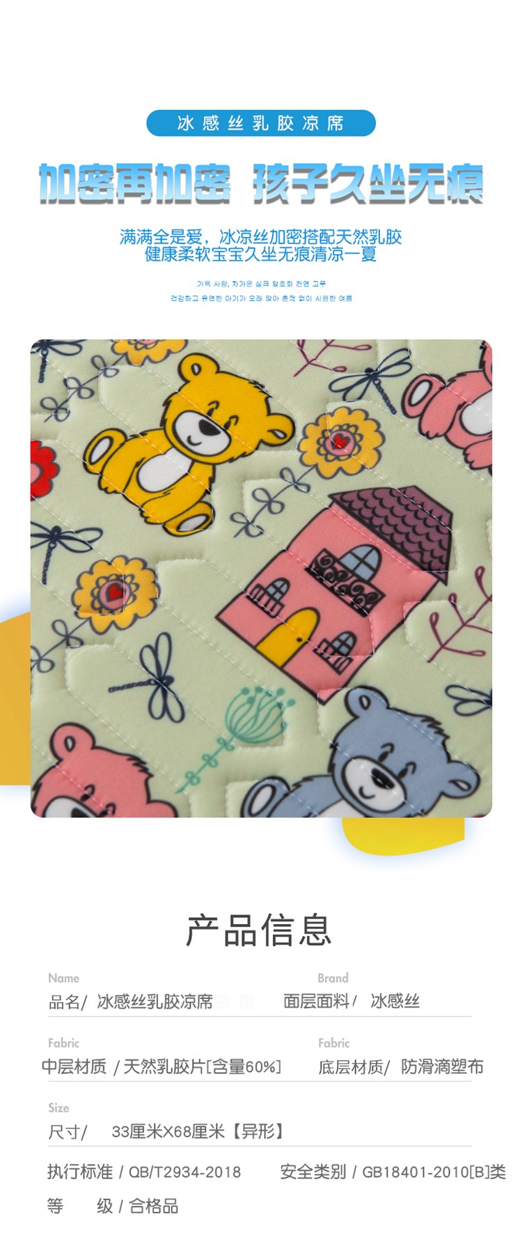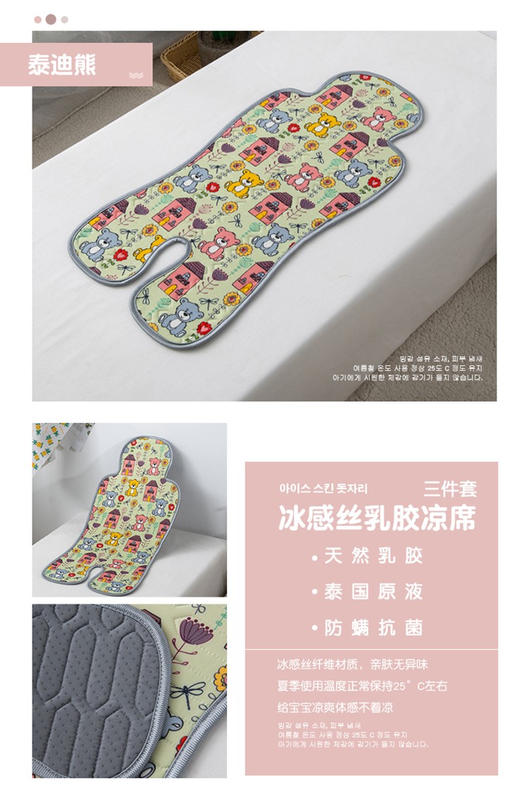 商品名称:小芽 2024新款儿童冰感丝乳胶凉席推车款 泰迪熊