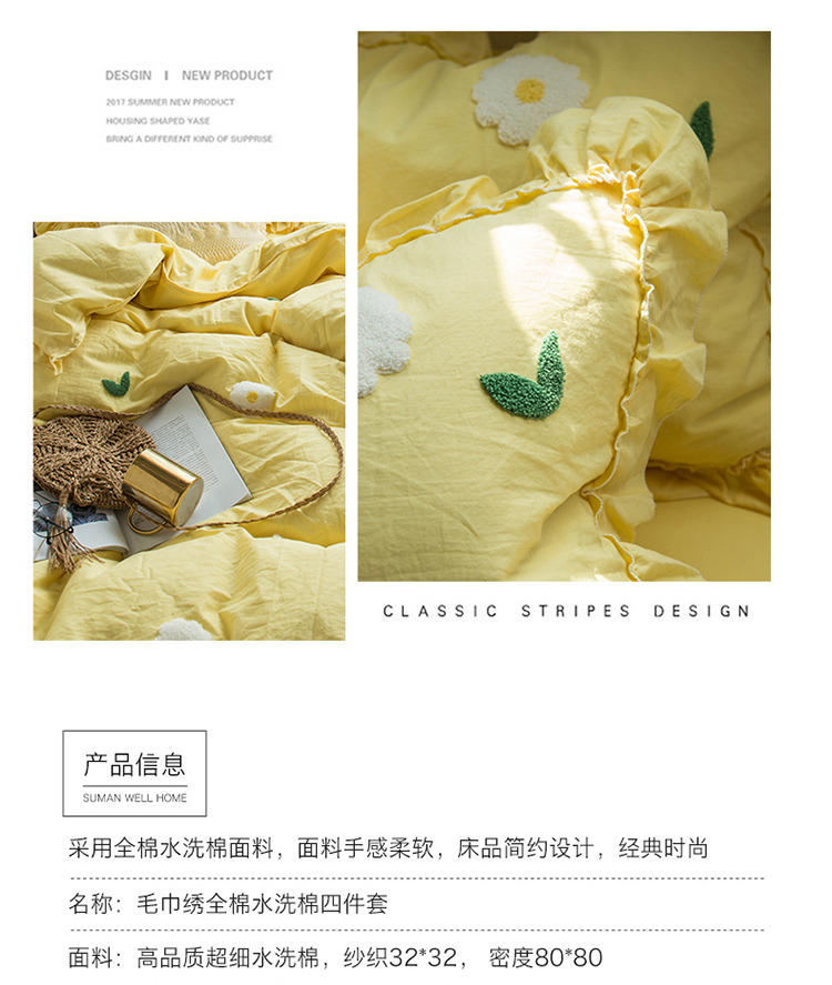 商品名称:淑女公社 2020新款毛巾绣四件套 小雏菊-嫩黄
