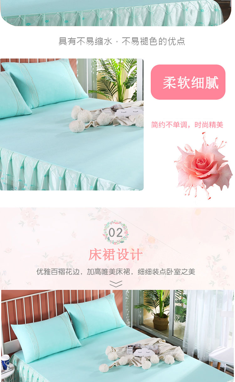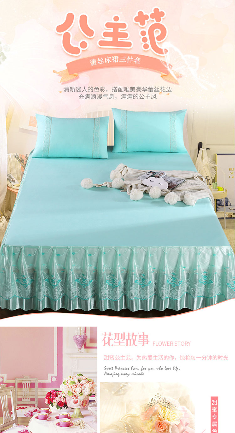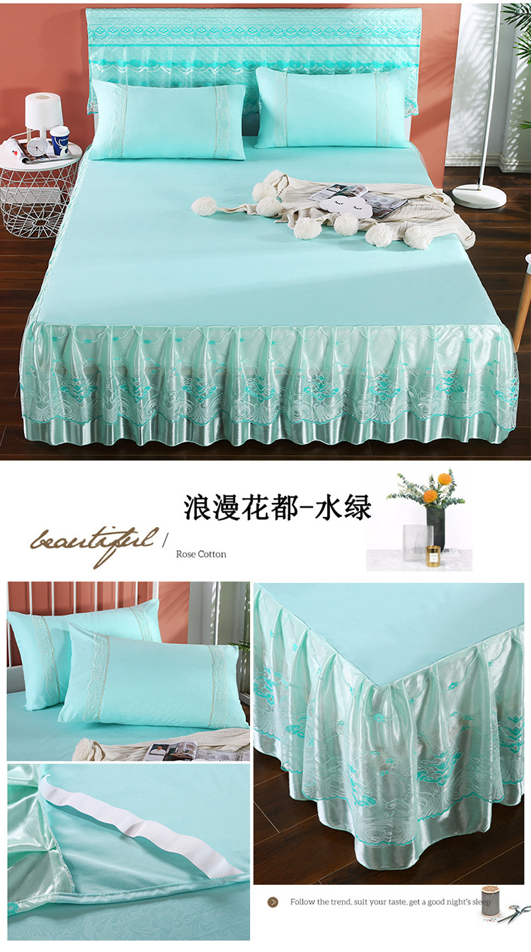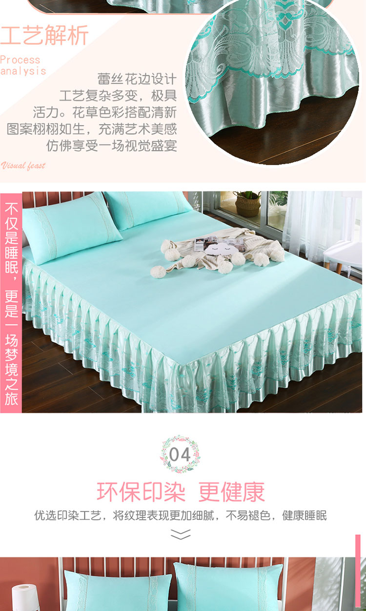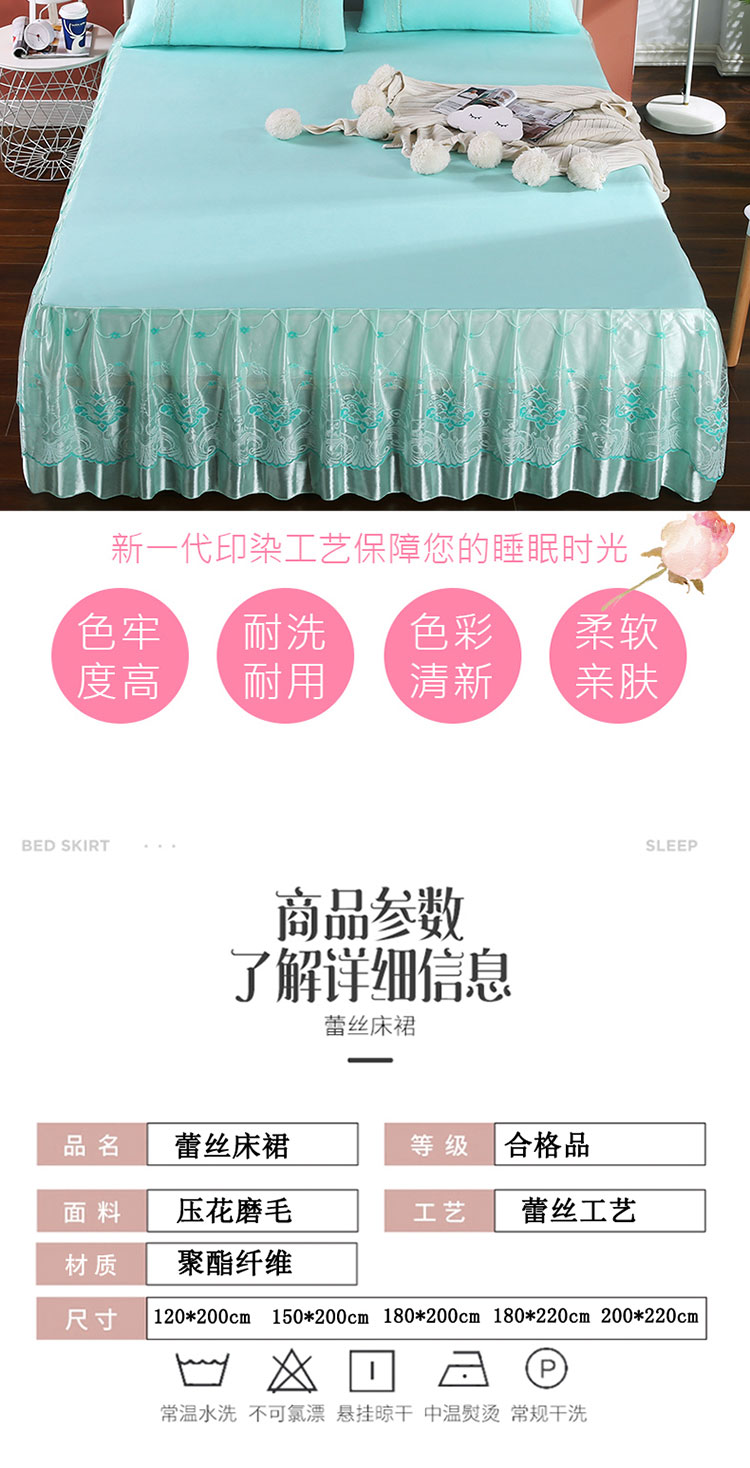 情恒 2020新款蕾丝床裙 浪漫花都(水绿)