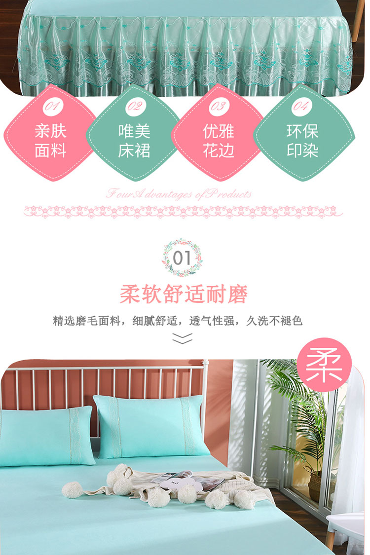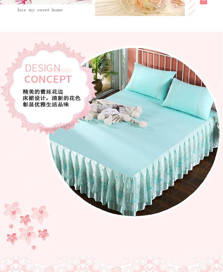 • 91家纺网 家纺一手货源 找家纺 情恒 2020新款蕾丝床裙 浪漫花都(水绿)
