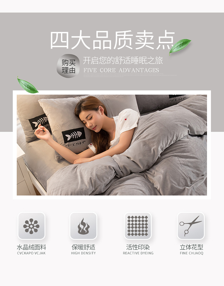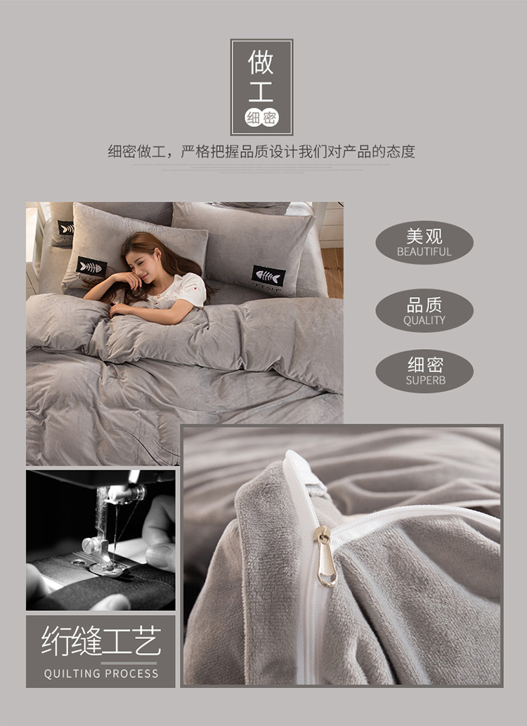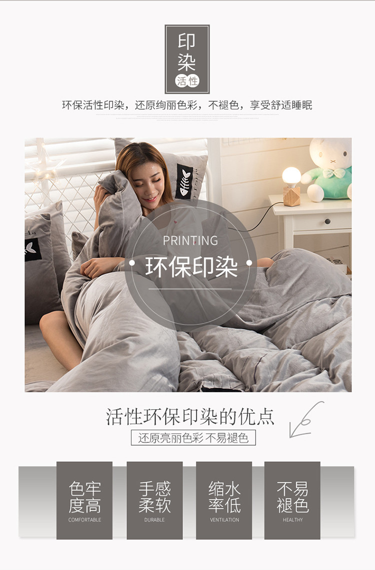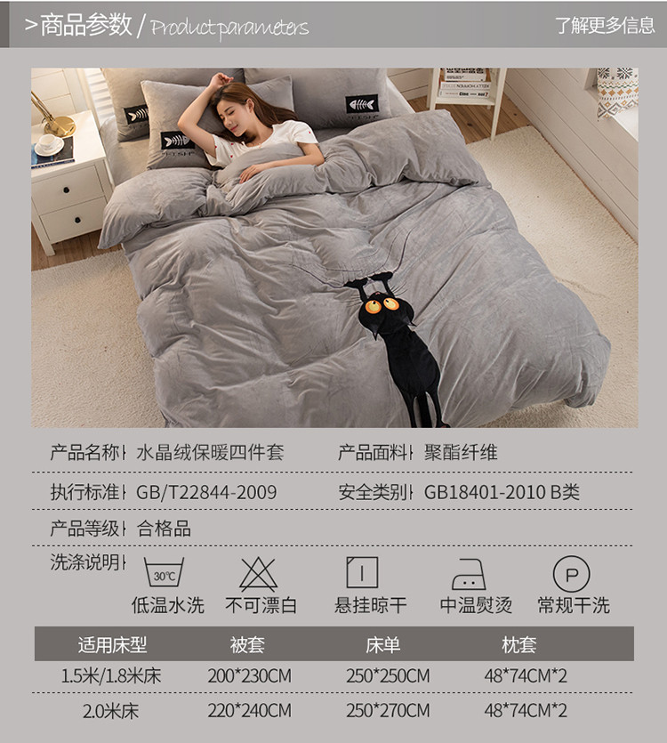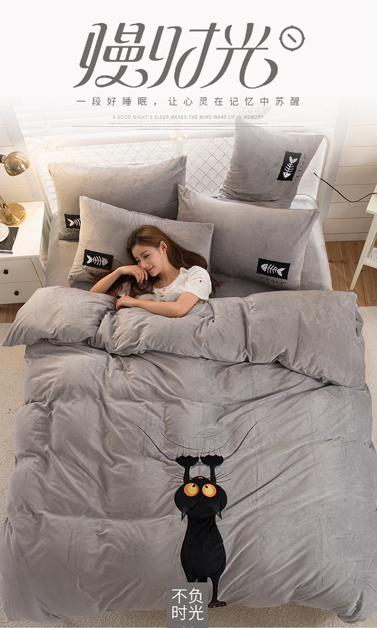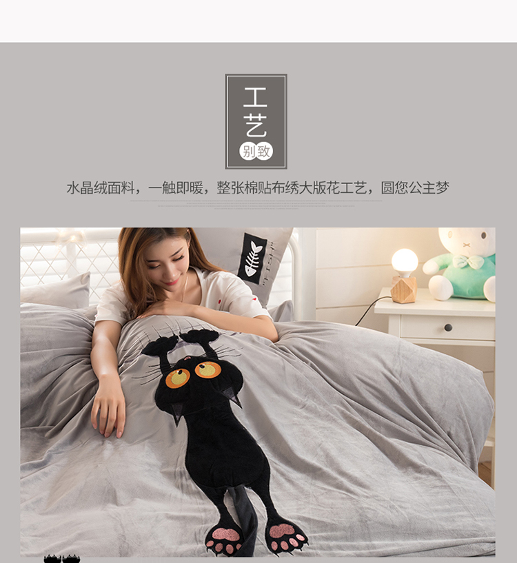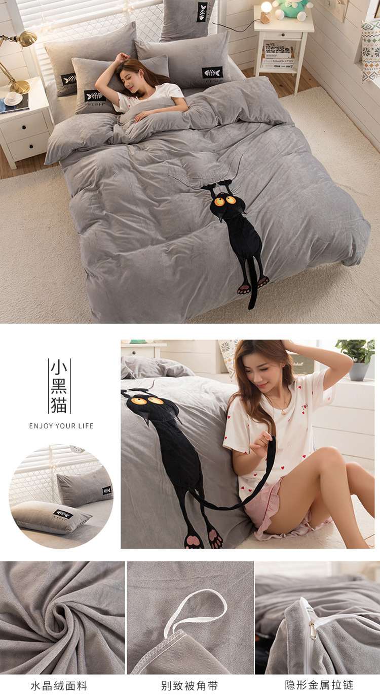 商品名称:青竹苑 2020新款贴布绣花水晶绒四件套 小黑猫