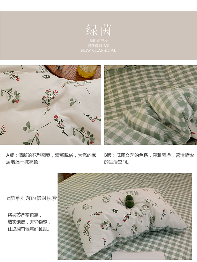 (总)窝米 2022夏季新品素色双拼水洗棉四件套,艾青双拼,冰莓粉双拼,绿云双拼,抹茶绿双拼,少女粉双拼,神仙紫双拼,雾霾蓝双拼,芝士双拼