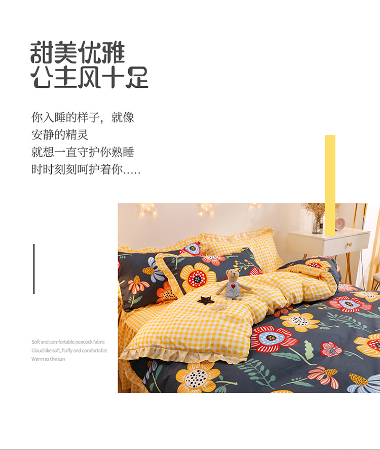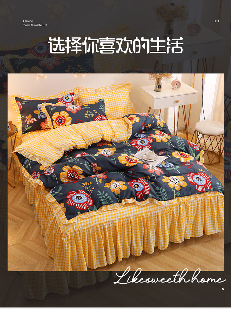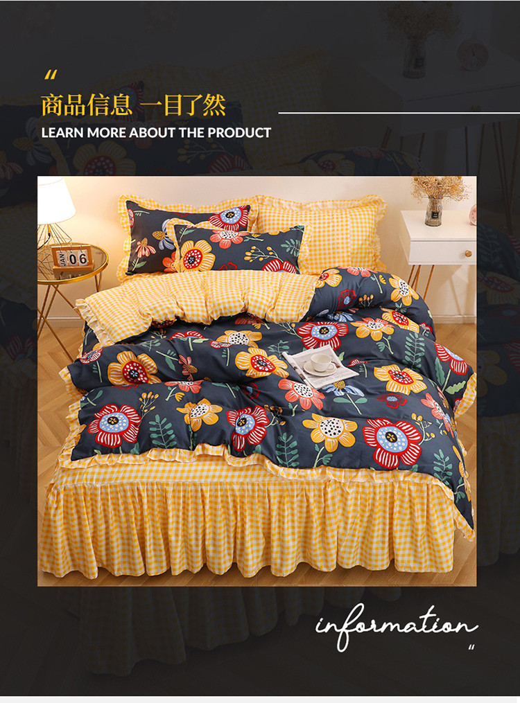 商品名称:米莱 2020新款韩版亲肤棉床裙四件套 心动花园