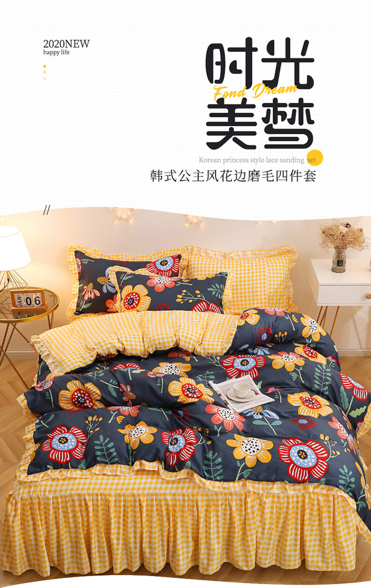米莱 2020新款韩版亲肤棉床裙四件套 心动花园