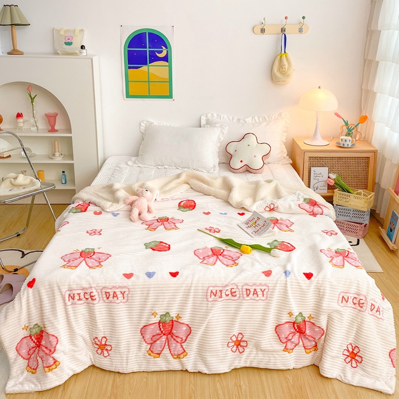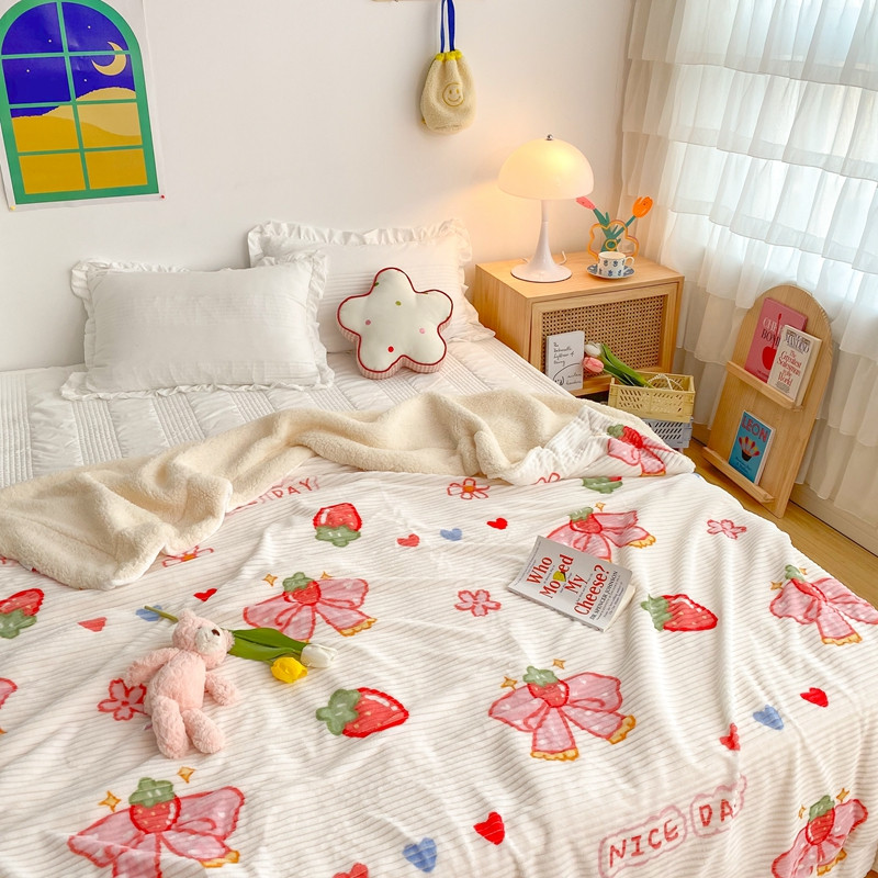 商品名称:顾里 新款ins网红少女心温暖牌魔法牛奶绒毛毯 草莓蝴蝶结