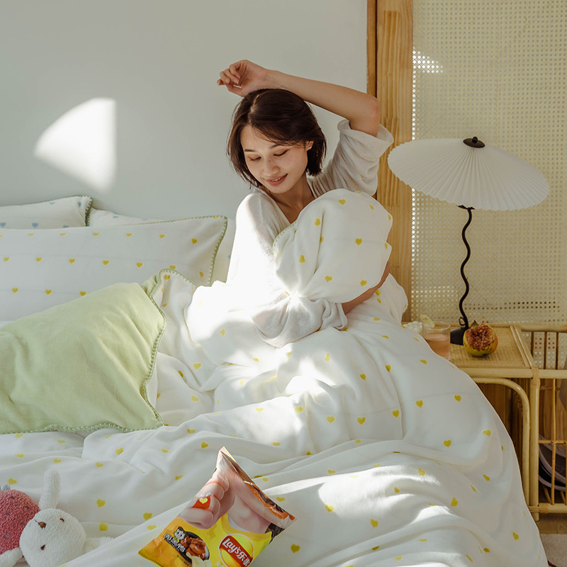 狠狠爱 2020新款小清新牛奶绒四件套-小甜心 香草黄