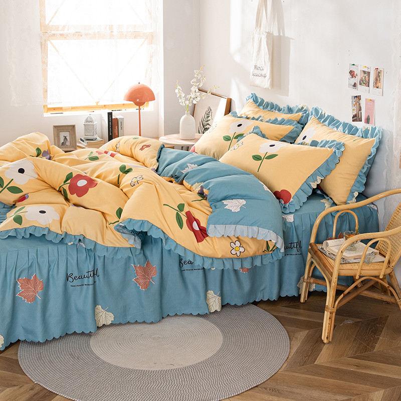 纽缦 2020新款加厚磨毛床裙款四件套 春风里