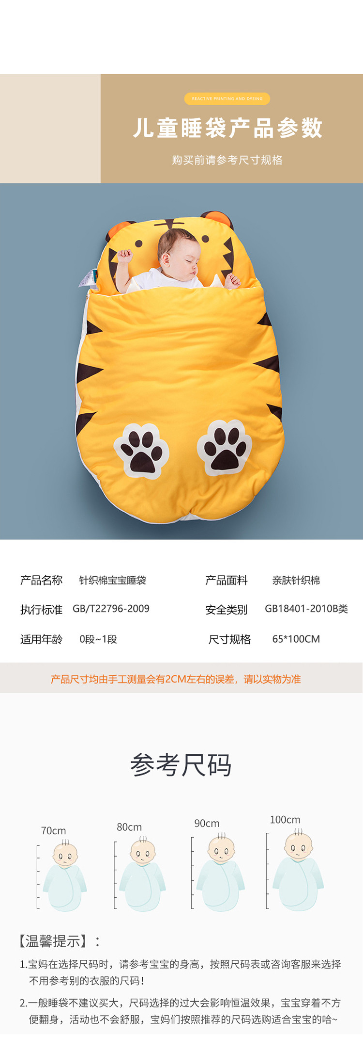 商品名称:小芽家居 2024新款亲肤针织棉宝宝睡袋 小老虎