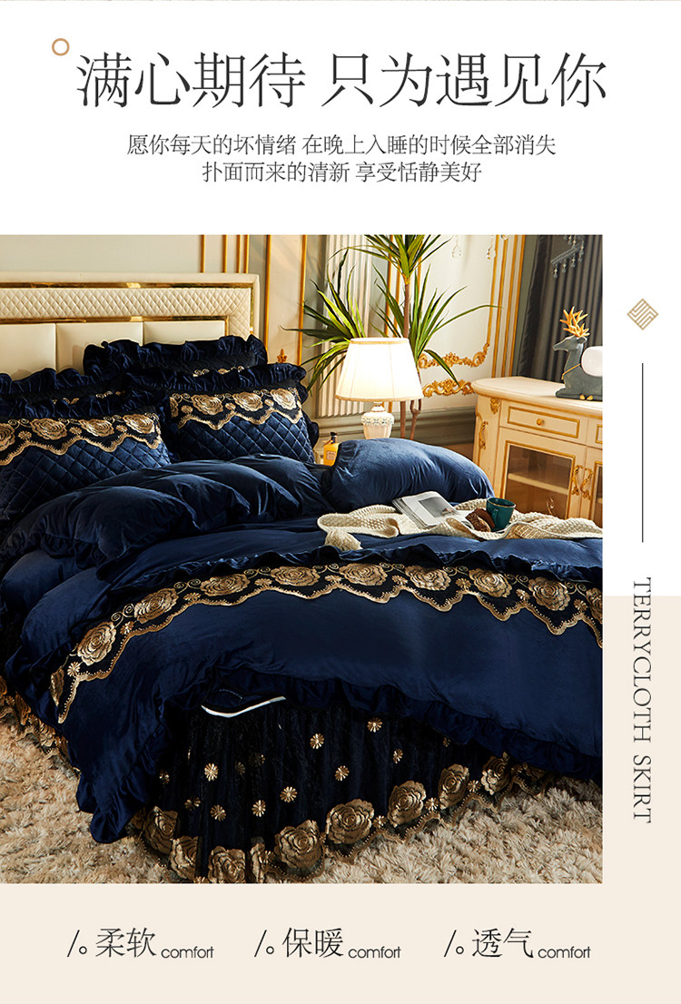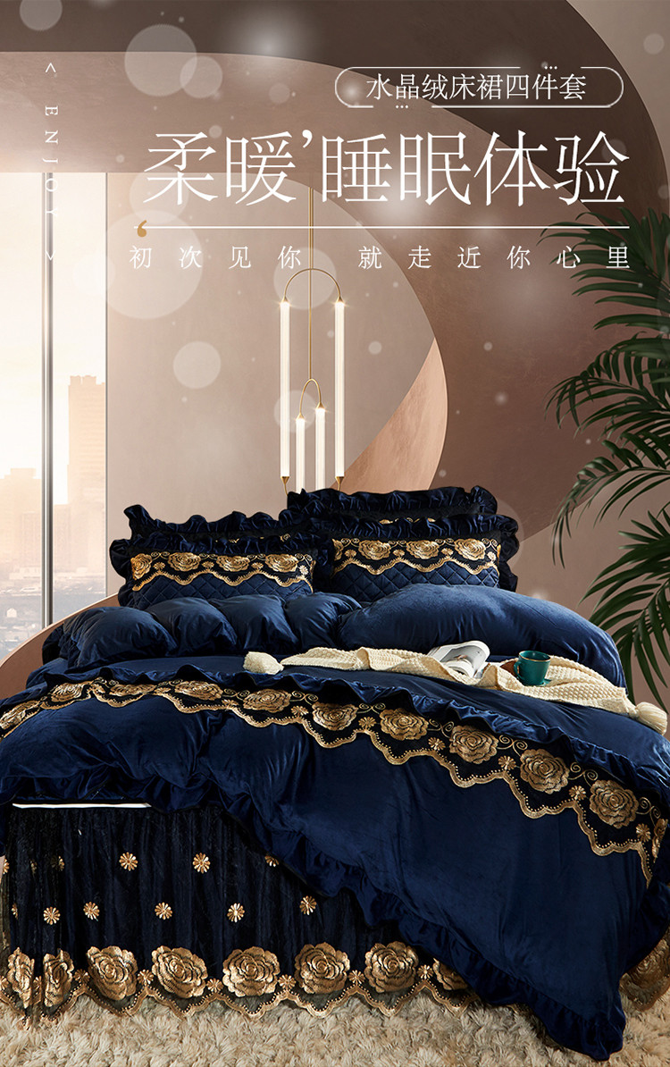 当前位置: 91家纺网 > 商品网购 > 床品套件 > 四件套 > 水晶绒四件套 > 网红馆 2025新款罗马情怀水晶绒床裙四件套 罗马情怀藏青