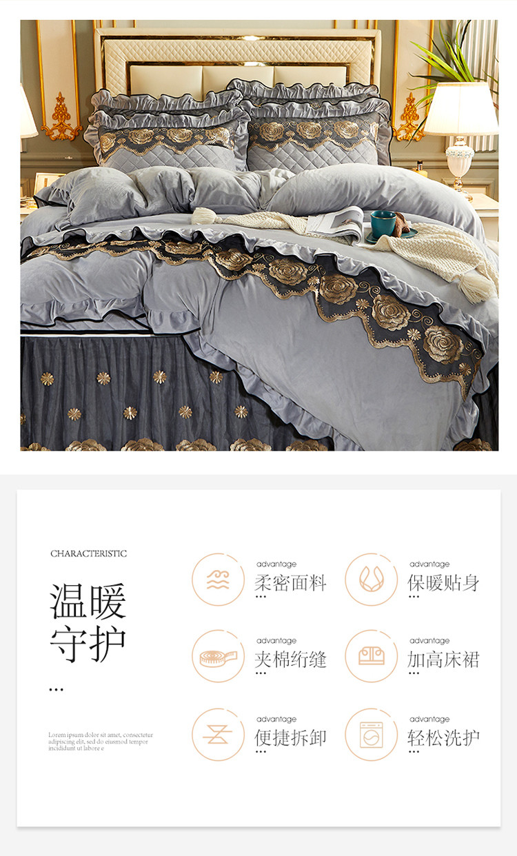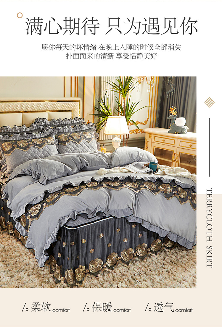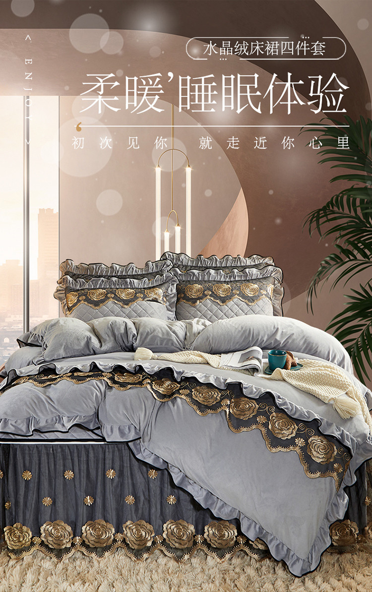 当前位置: 91家纺网 > 商品网购 > 床品套件 > 四件套 > 水晶绒四件套 > 网红馆 2025新款罗马情怀水晶绒床裙四件套 罗马情怀烟灰