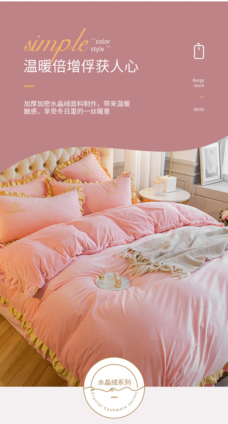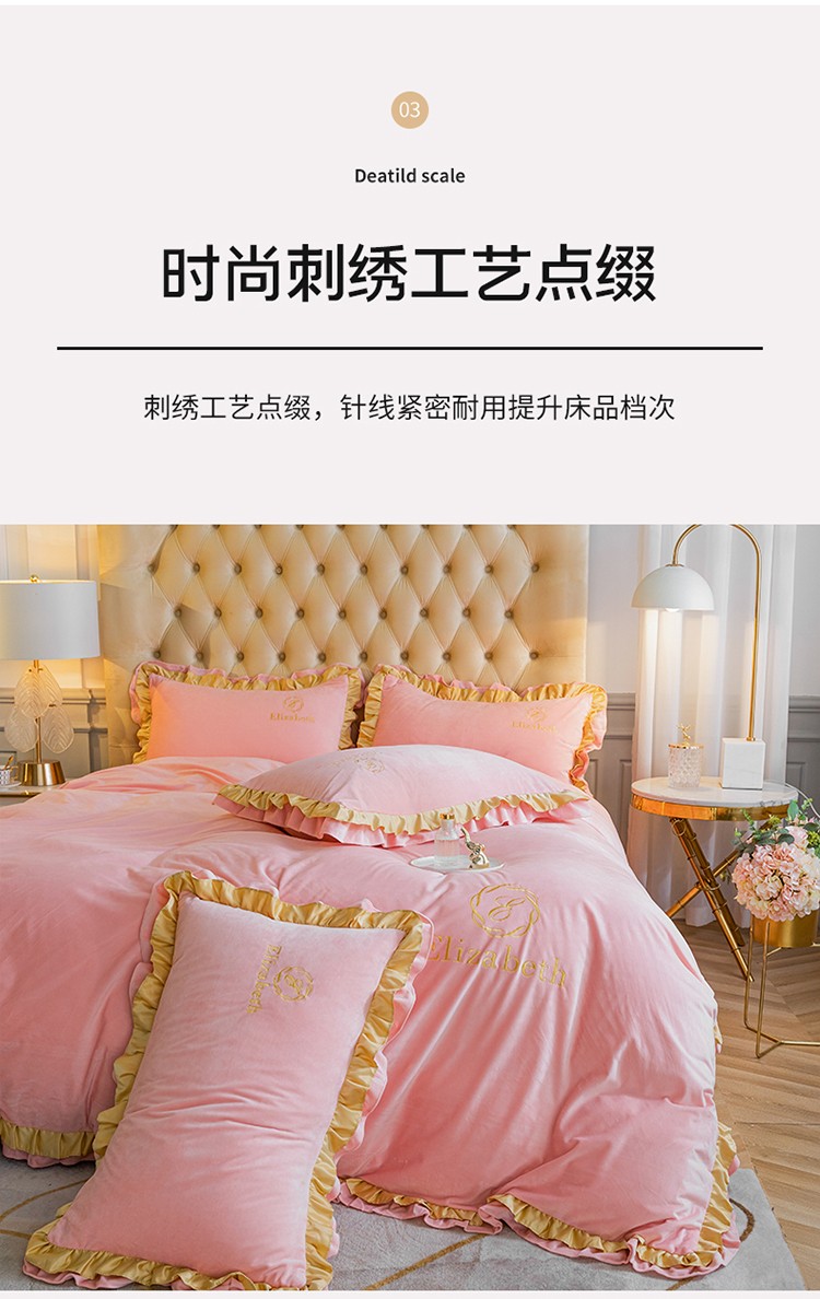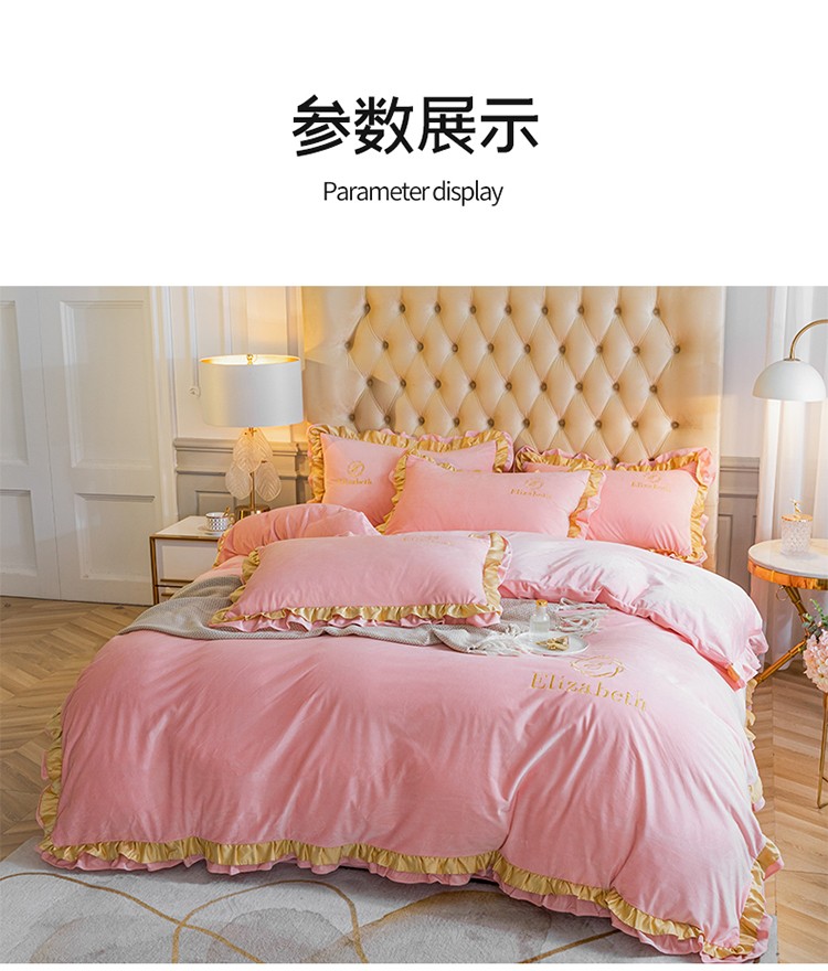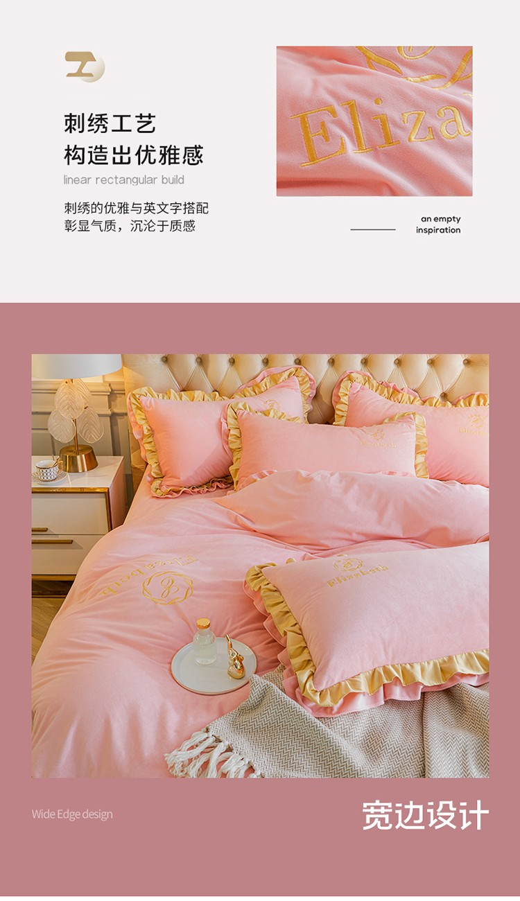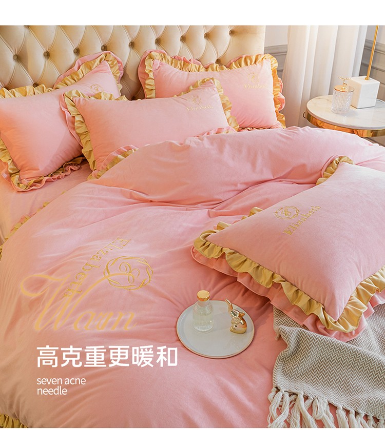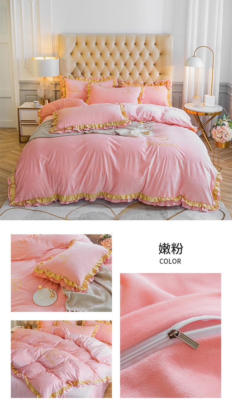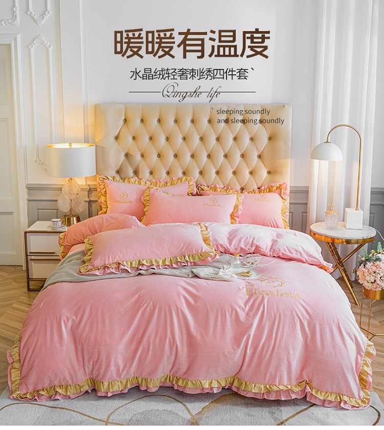 商品名称:米奈 2020新款水晶绒法莱绒牛奶绒轻奢刺绣四件套 嫩粉