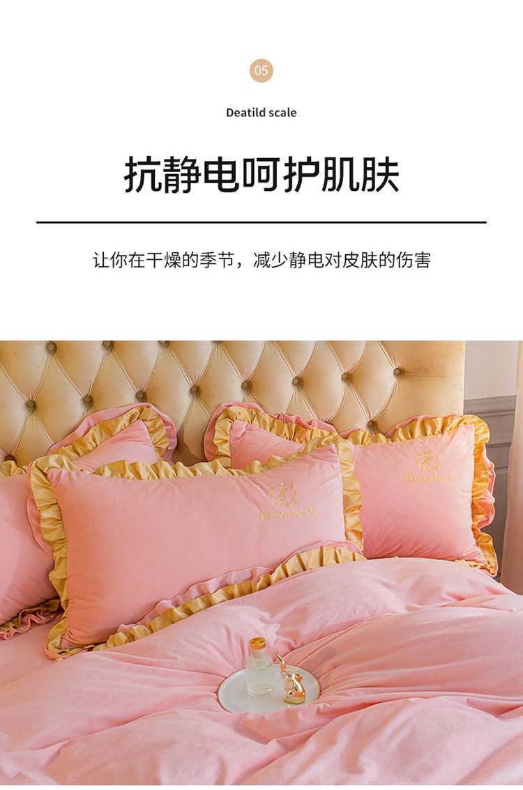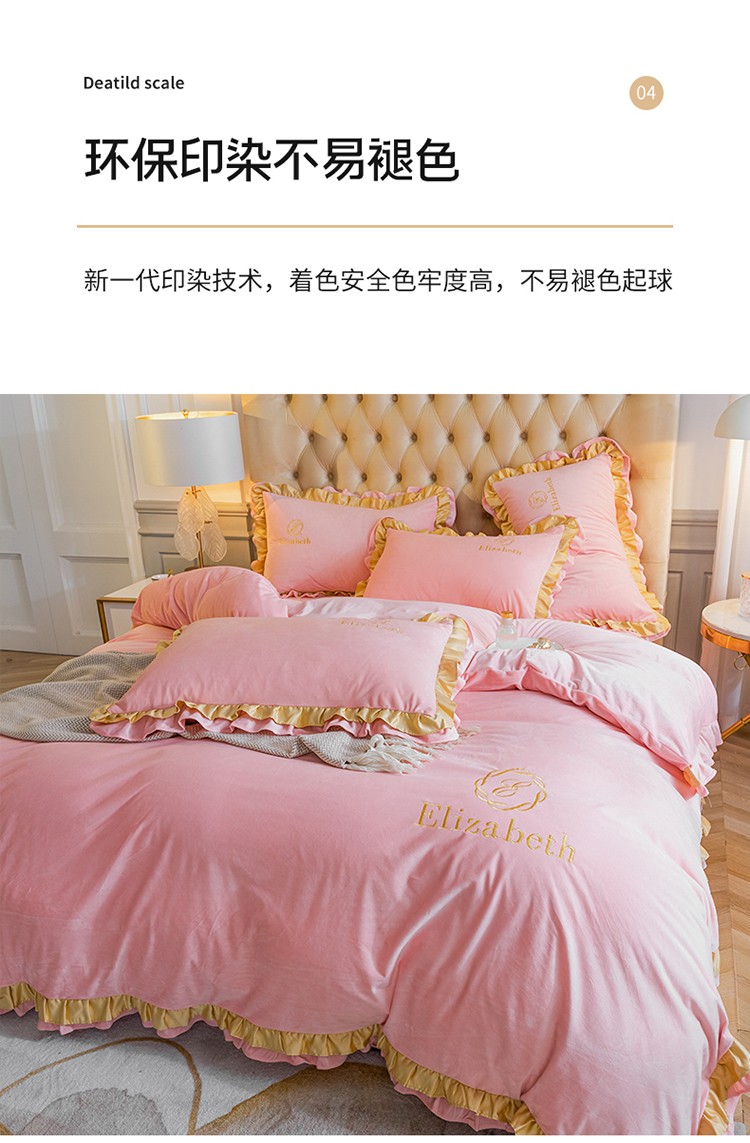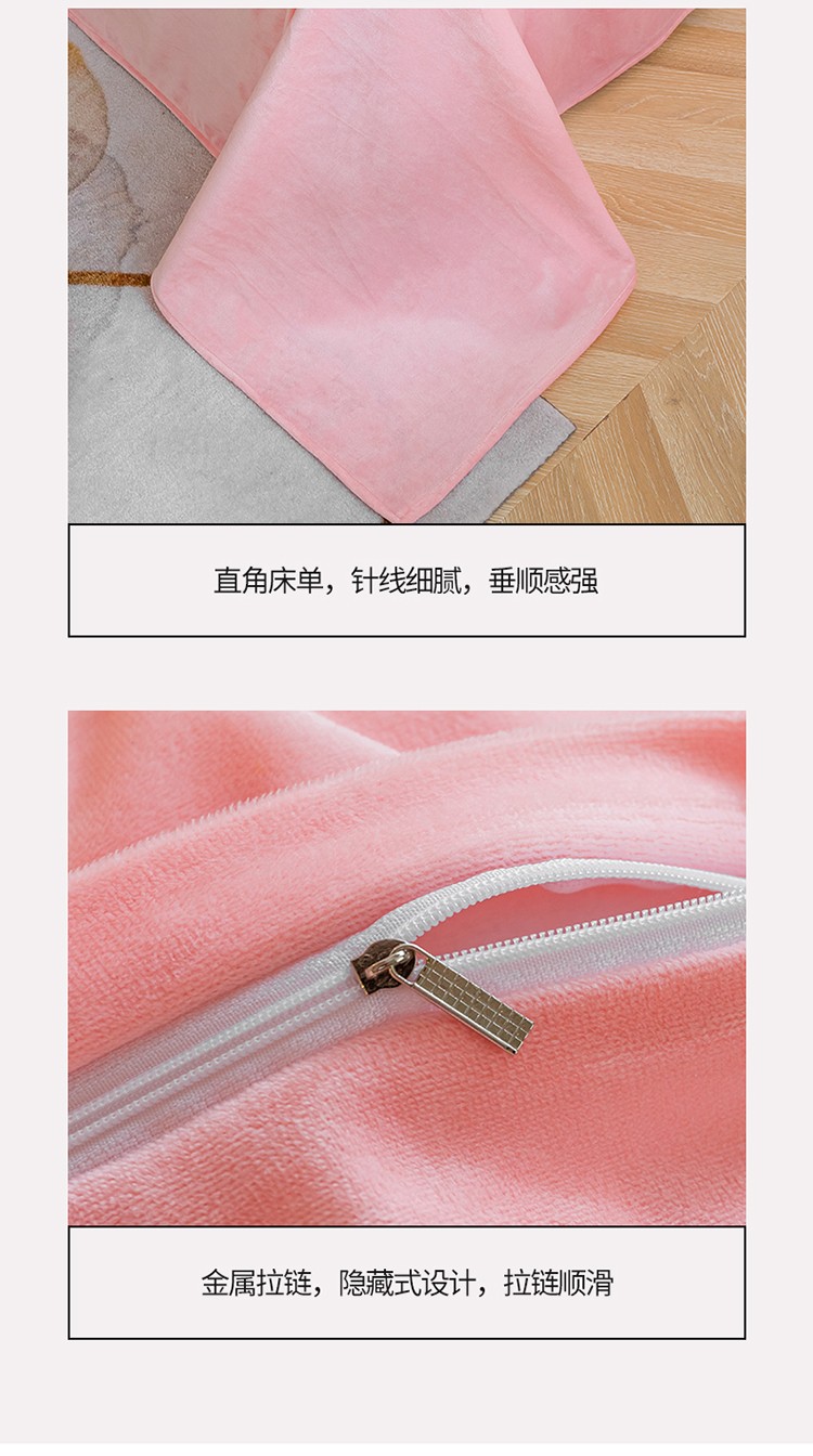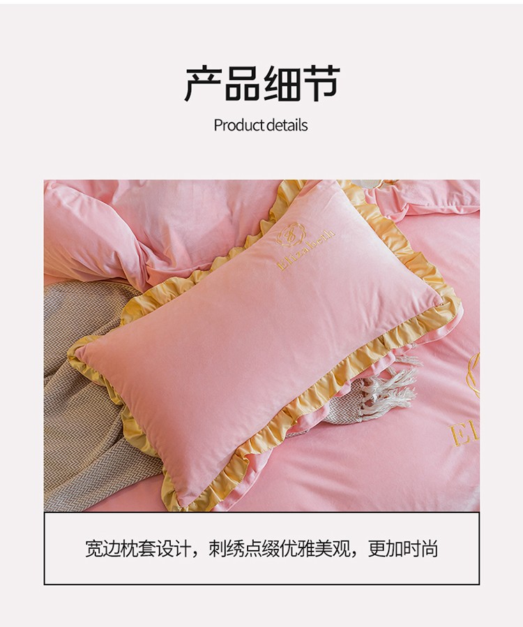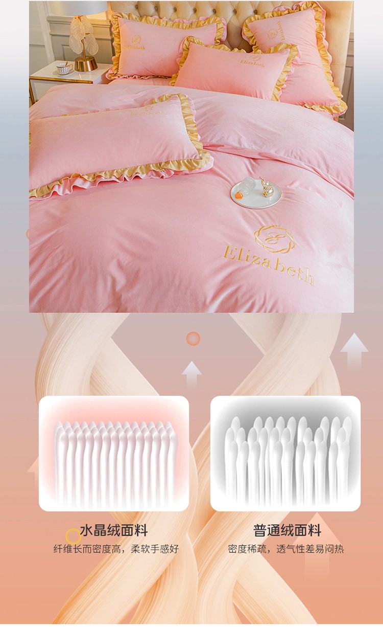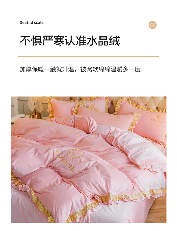 商品名称:米奈 2020新款水晶绒法莱绒牛奶绒轻奢刺绣四件套 嫩粉