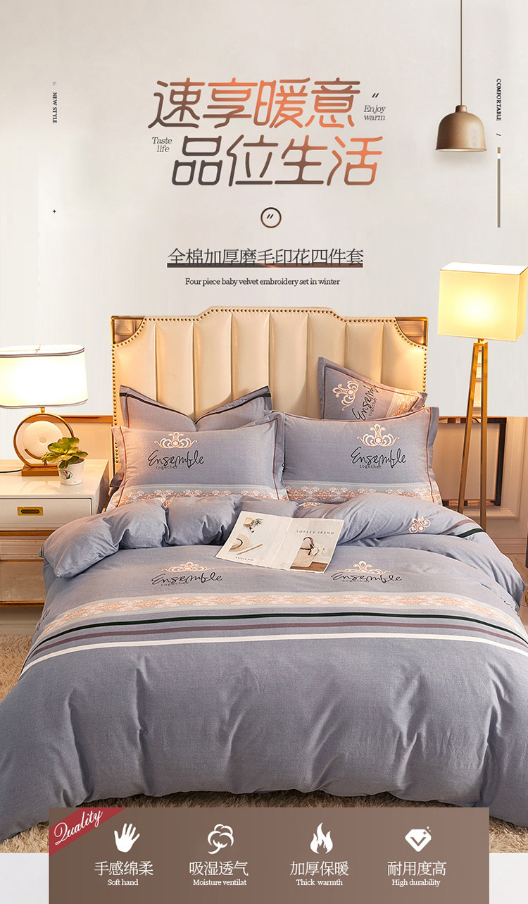 当前位置: 91家纺网 > 商品网购 > 床品套件 > 四件套 > 普通磨毛四件套 > 雲归梦 2020新款全棉加厚磨毛四件套 时光偶遇-灰