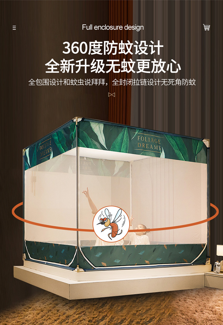 当前位置: 91家纺网 > 商品网购 > 床上用品 > 蚊帐 > 坐床式蚊帐 > 坐床式蚊帐儿童防摔防蚊拉链方帐铁艺加厚加固支架睡帐 热带雨林