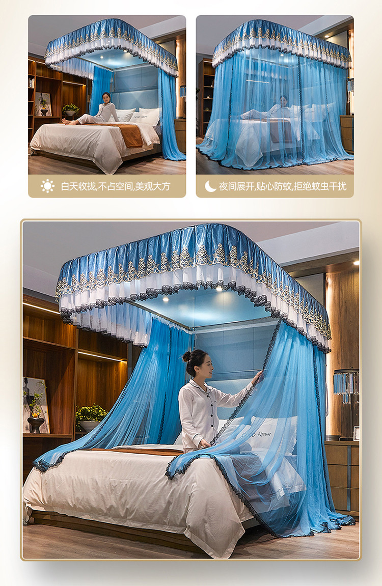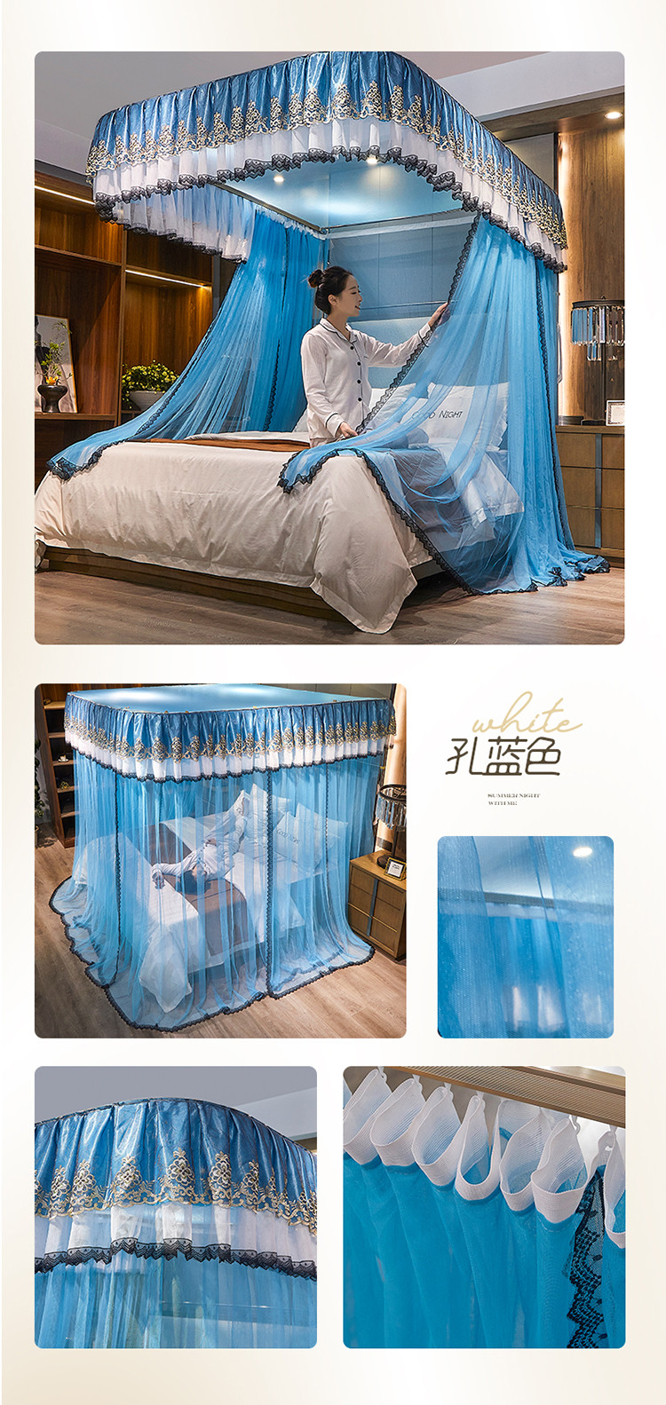 (总)迪凡保罗蚊帐 2025新款2410三开门落地宫廷蚊帐,海岛蓝,皮红色,浅蓝灰,太湖绿,天空蓝,樱花粉
