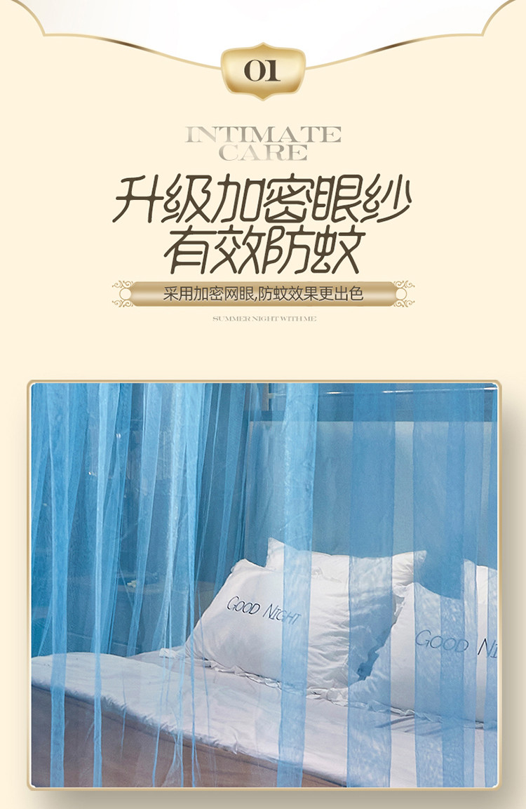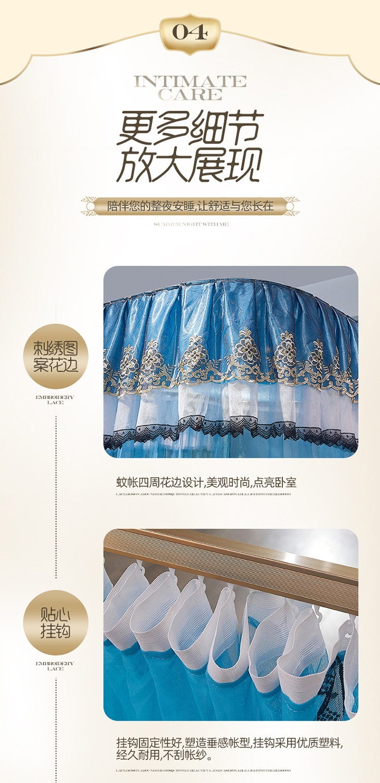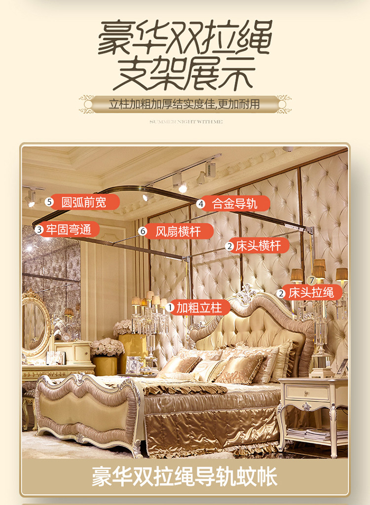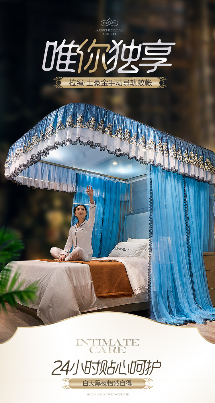 商品名称:迪凡保罗新款A33广东拉绳土豪金手动导轨蚊帐三开门 孔蓝