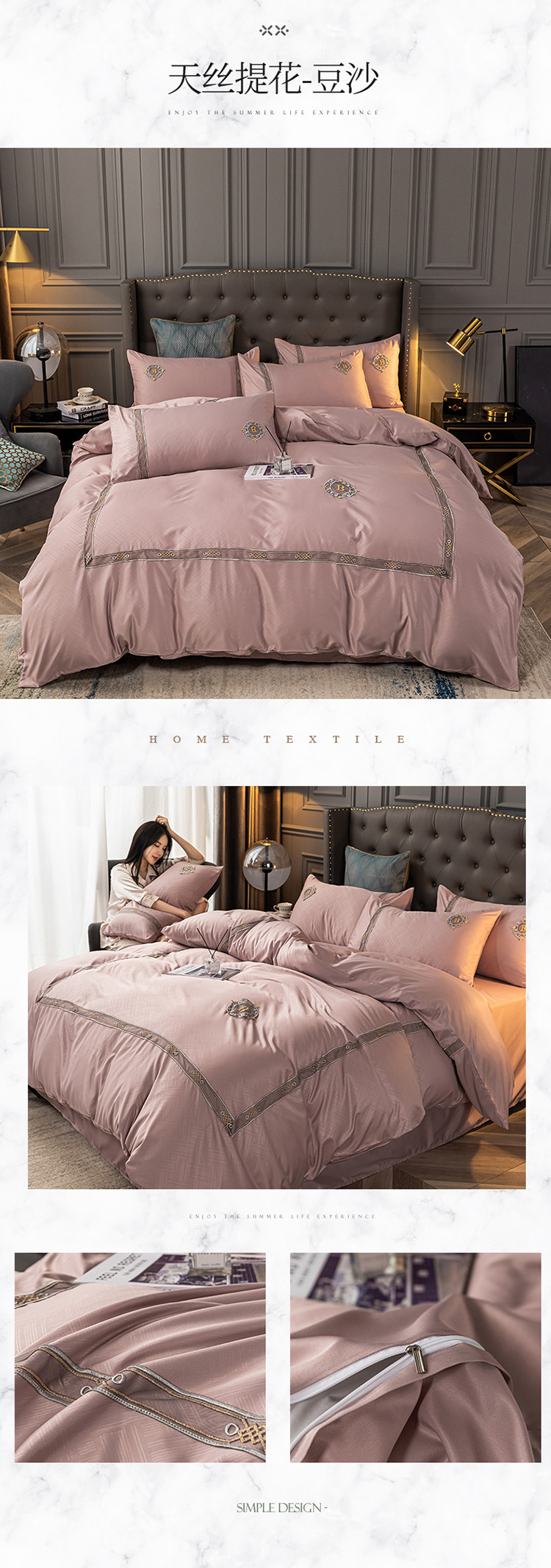(总)意尚风情 2023新款天丝提花蕾丝刺绣四件套,薄荷绿,宾利兰,豆沙,高级灰,格调灰,姜黄,墨绿,少女粉,香芋紫,雅绿