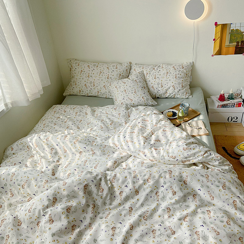 (总)尺素 全棉40支喷气13372韩国ins设计师四件套,花舞,篱落粉,篱落黄,落英,派对,童趣,涂鸦,小粉兔,雪地熊
