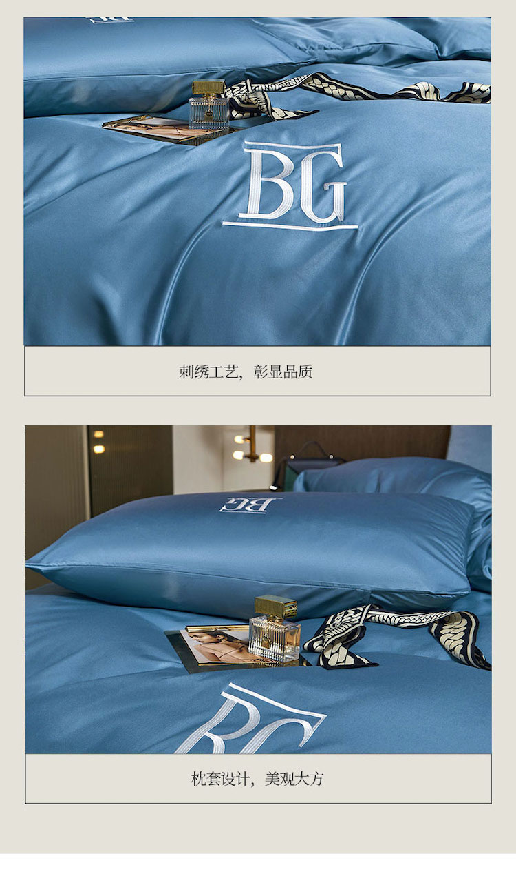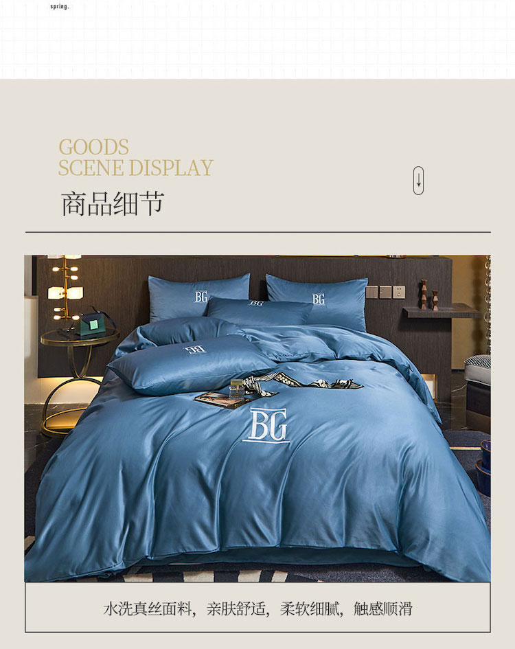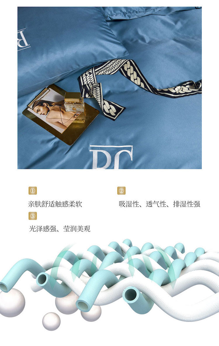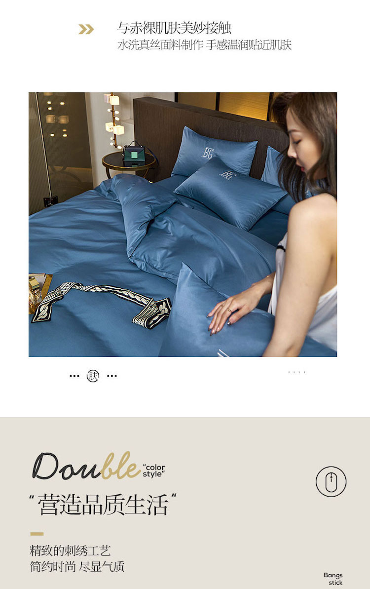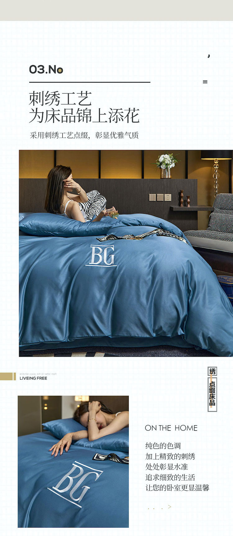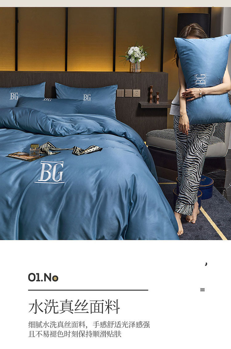 商品名称:凡客 2021春夏新款60支水洗真丝绣花四件套 路易斯-宝石蓝