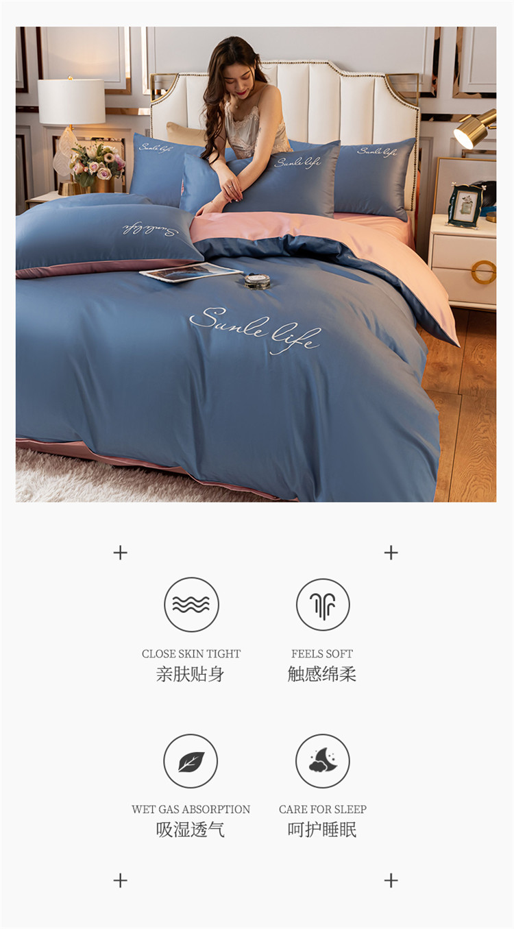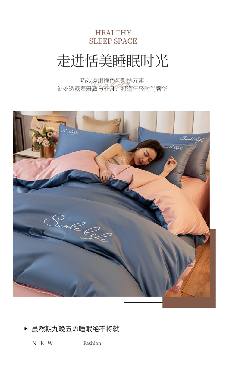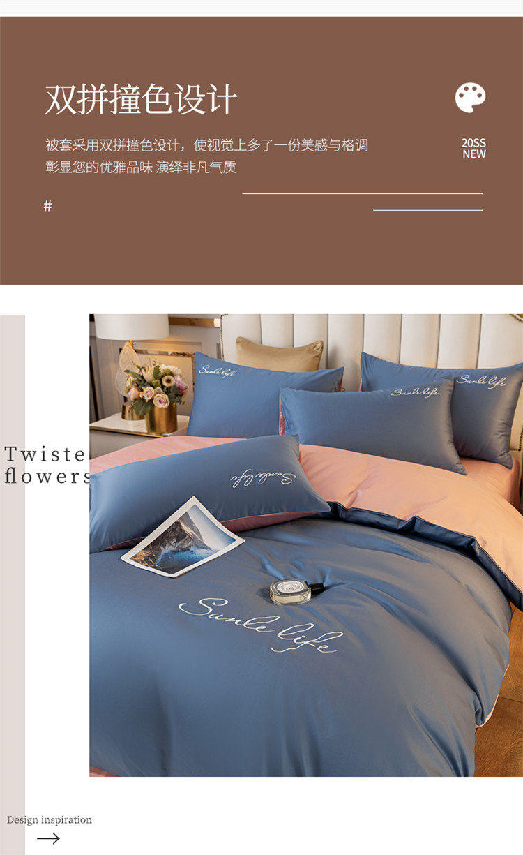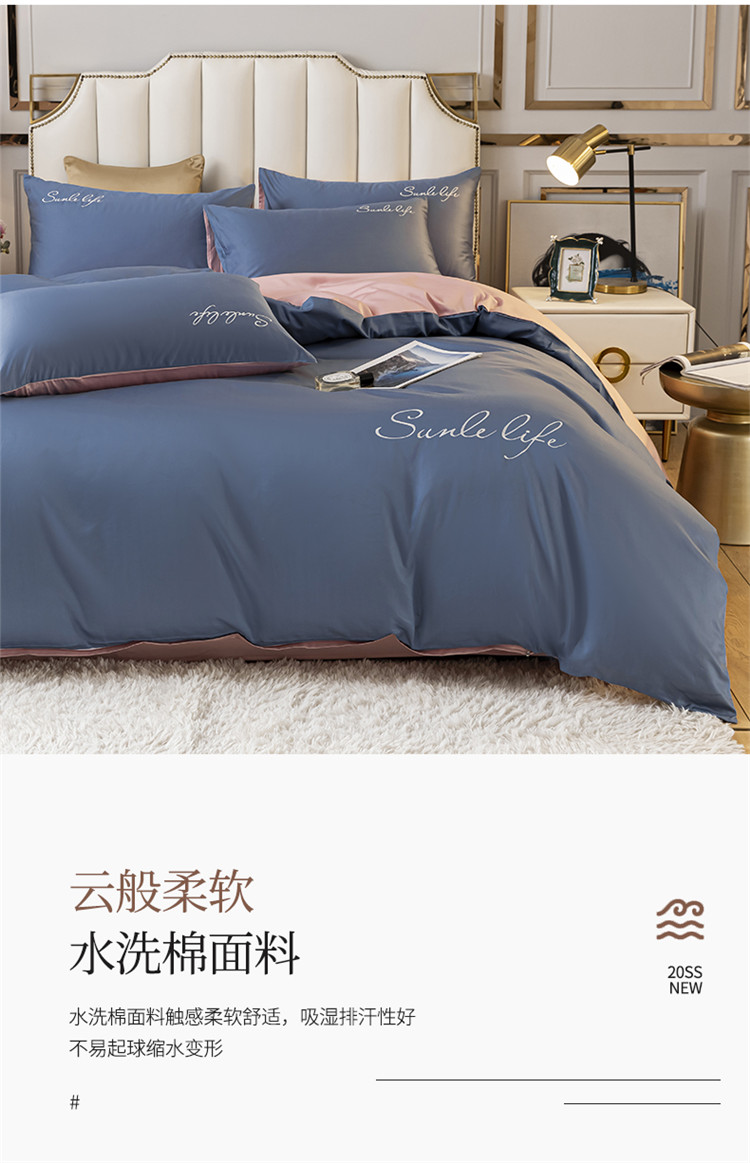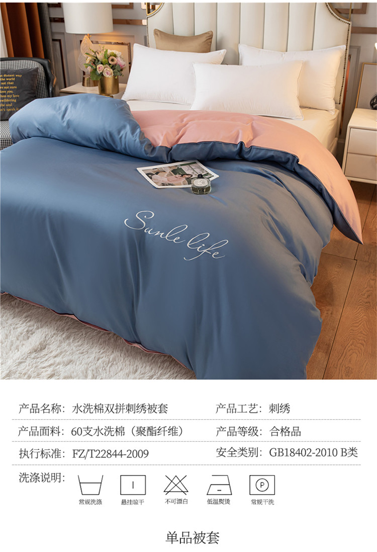 商品名称:古吉梦 2024新款水洗棉双拼刺绣单被套 双拼-宾利蓝